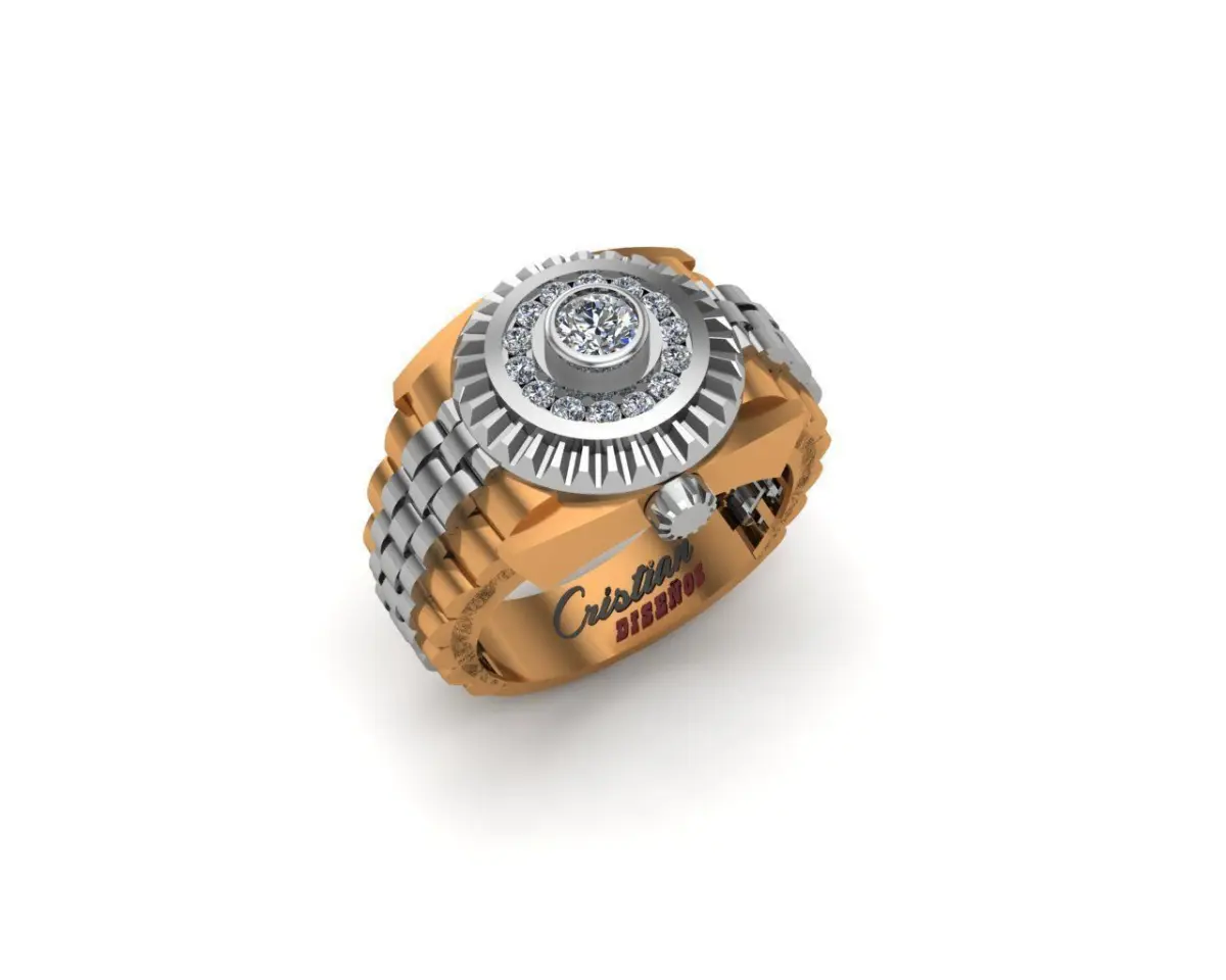 Diseño anillo Listo para imprimir, viene en tres piezas para fundicion en oros de dferente color y el anillo en una sola pieza para impresion 3d Tamaño del anillo: 8 y medio EE. UU.