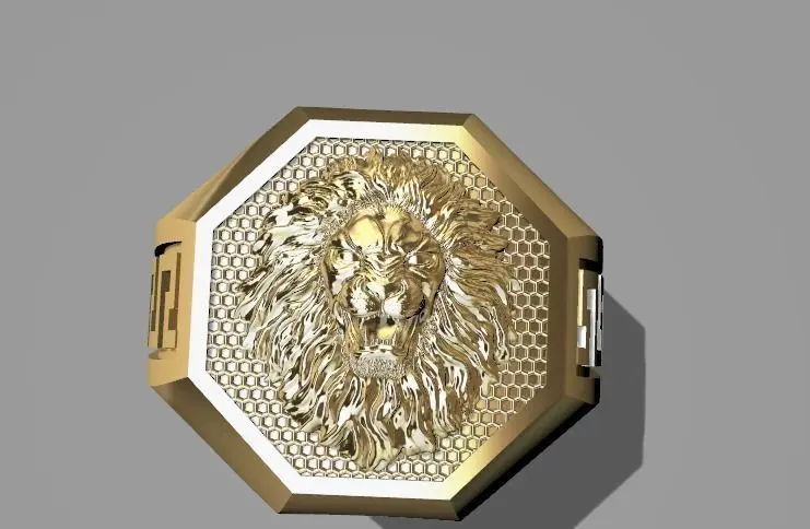 anillo leon con textura y versage a los lados, leon por apartes y también todo completo disponible en 3dm y stl en 3dm para que lo modifiquen y le coloque otro signo o objeto al anillo sale de 12 gramos en oro de 18k