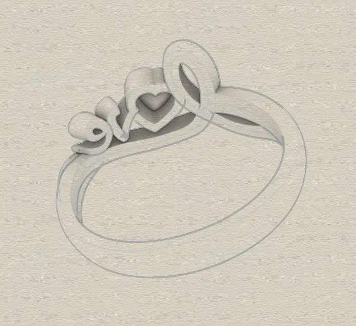 anillo disponible en formato stl y 3dm. en talla 9 americano, con piedra corazon de 4mm