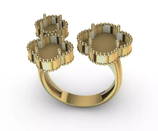 hermoso anillo vancleef de 3 trebol cada trebol tiene una piedra de 6mm 8mm y 10mm imprimible y listo para fundir ya sea oro o plata
