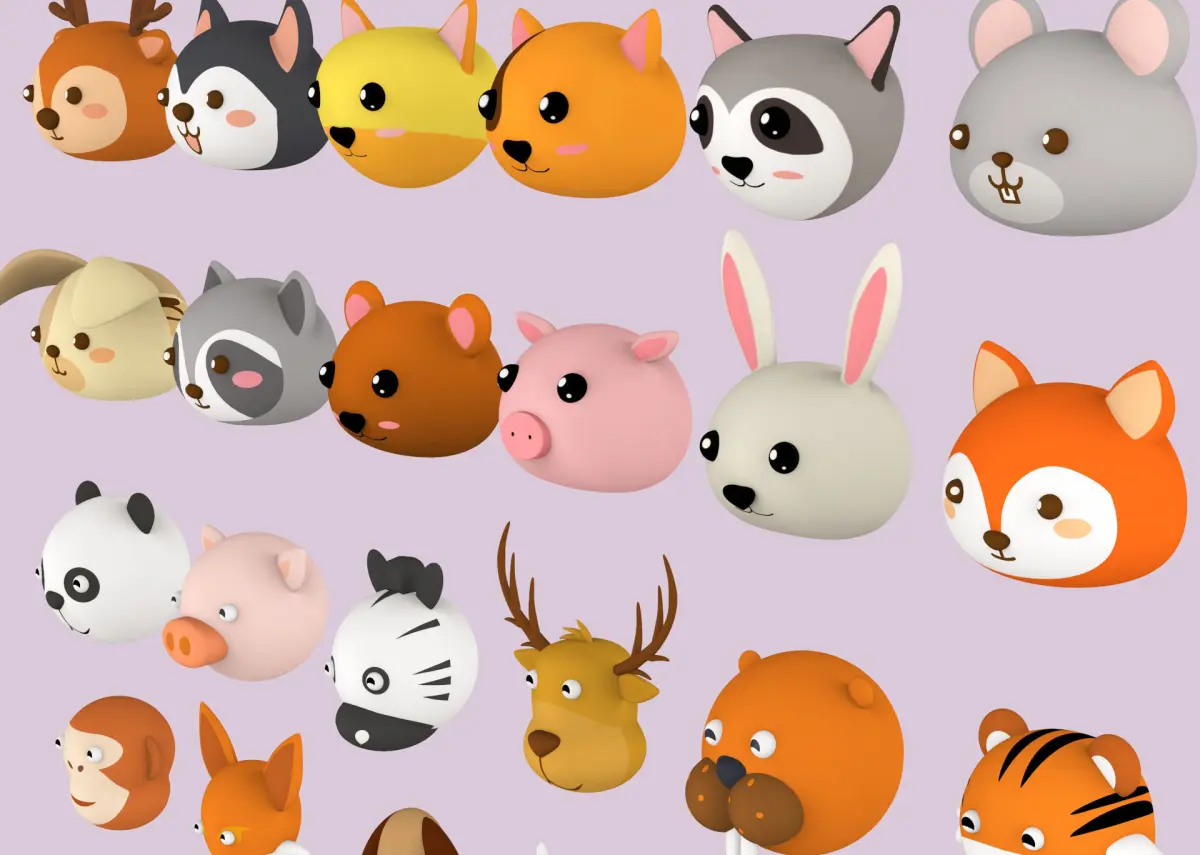 Animation Faces: While the models do not come pre-rigged, they offer the potential for animation. The list of included animal faces ranges from common creatures like bears, dogs, and cats to more exotic species such as elephants, pandas, and tigers.