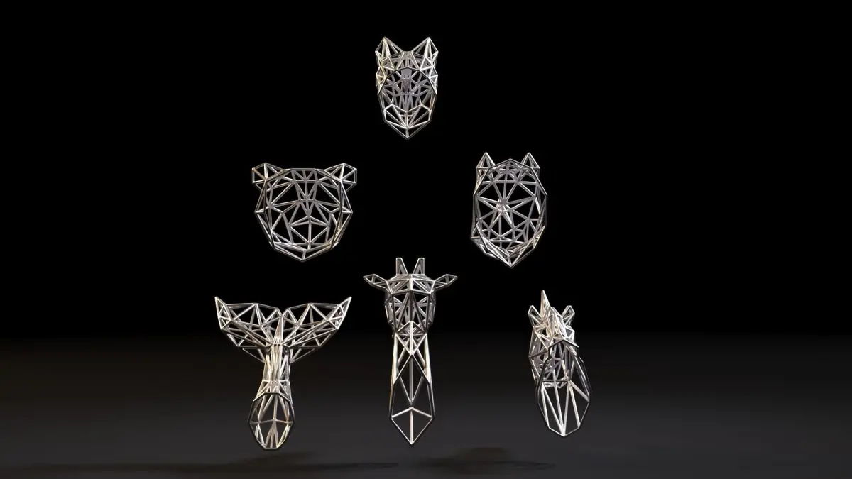 Animal on the wall voronoi. Animal in low poly style. The figure is hung on the wall. Very unusual interior decor. It can perfectly decorate your home or office.