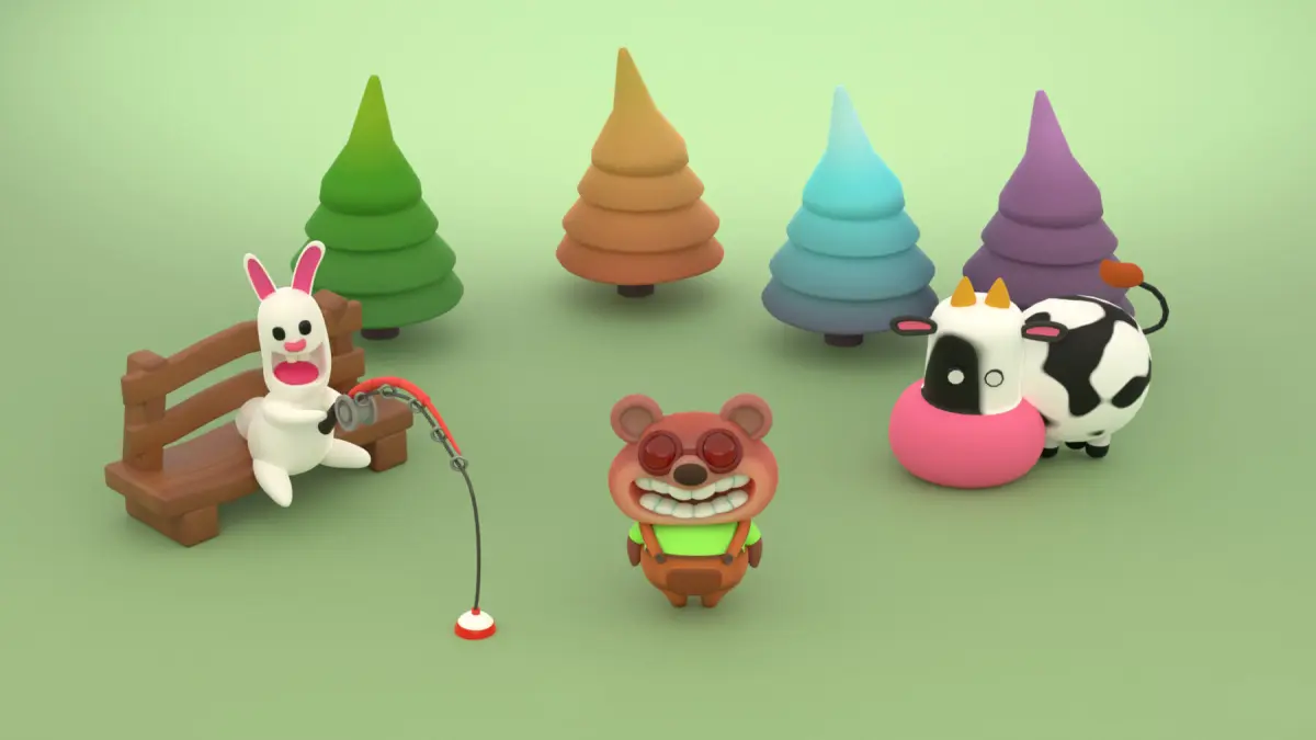 stylized characters: albatros, chickens, rebbits,bird,bear