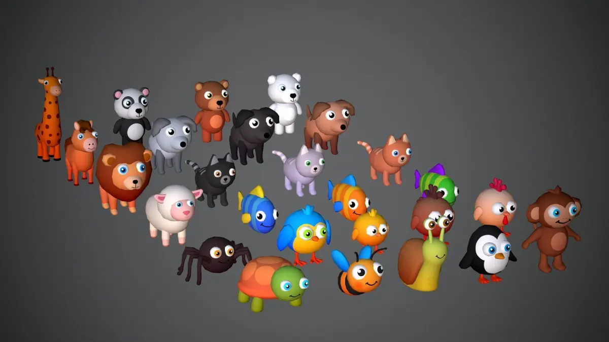 ▸Kinds of animal: Cat (1,824 Tris / Black, Brown, Grey) - Dog (1,912 Tris / Black, Brown, Grey) - Bear ( 1,560 Tris) - Polar Bear (1,560 Tris) - Panda (1,560 Tris) - Turtle (1,432 Tris)- Chick (1,272 Tris)- Chicken (1,408 Tris) - Rosster (1,728 Tris) - Bird (1,272 Tris) - Bee (1,368 Tris) - Spider (1,360 Tris)- Monkey (1,888 Tris) - Fish ( (968 Tris)Blue, Yellow, Green) - Snail (2,080 Tris) - Penguin (1,368 Tris) - Lion (2,024 Tris) - Horse (1,416 Tris) - Giraffe (1,552 Tris) - Sheep (1,688 Tris)