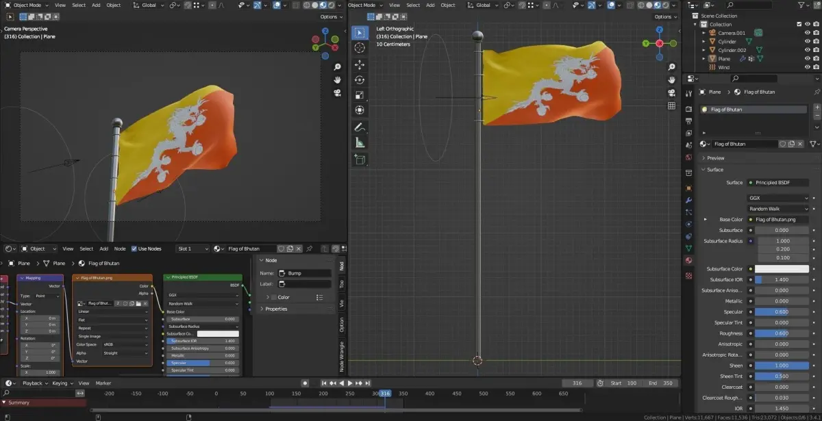 Photorealistic animation of the Bhutan flags.Verts: 11.667Faces: 11.536