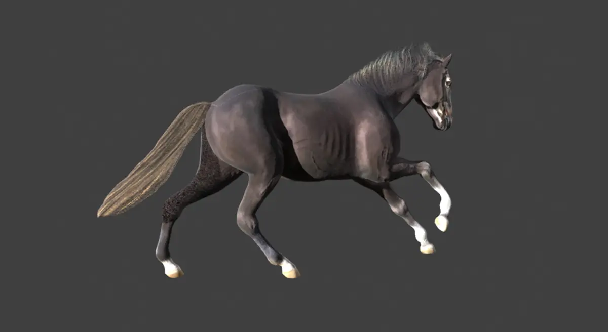 3D Model of a black Horse with animation. Perfect for integration into games, movies, and animation projects. Created with Blender, it features a clean topology and a well-organized UV map, ensuring easy texturing and customization with no stretched or overlapping UVs.