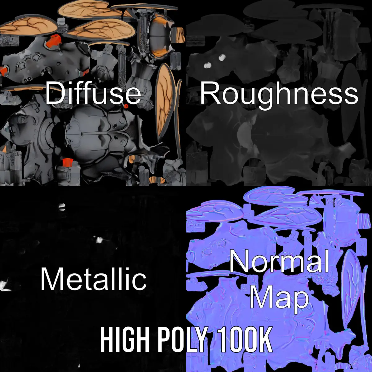 Home Catalog Animated Black Insectoid Creature with Wings Rigged and Animated Low-poly 3D model