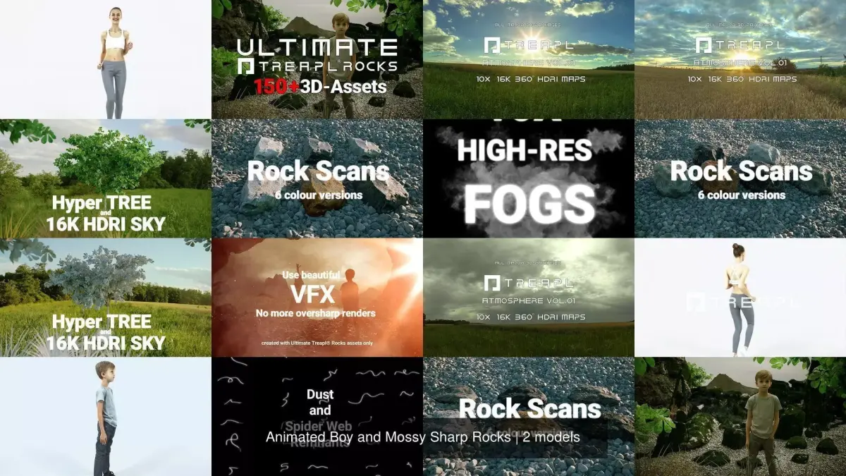 We only used Ultimate Treapl Rocks 3d-assets and VFX for every single presentation image and video you are seeing!