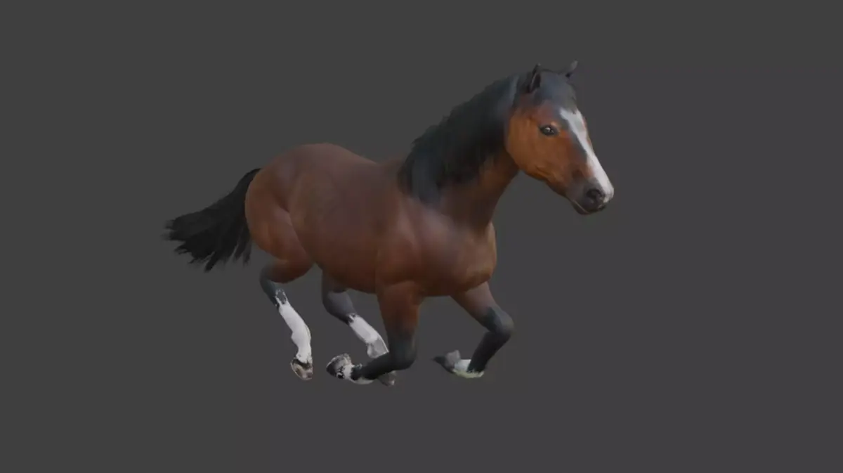 High Poly Geometry : Detailed and clean topology that captures the muscular structure and natural curves of a real horse — perfect for cinematic rendering and up-close shots.