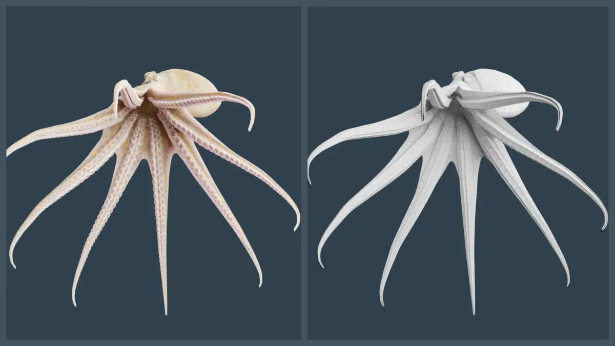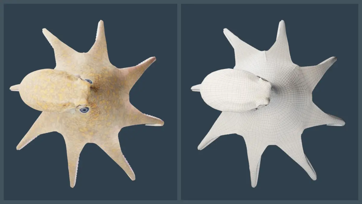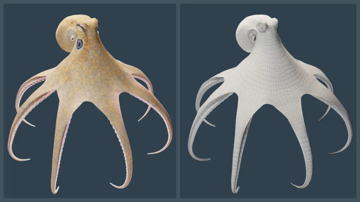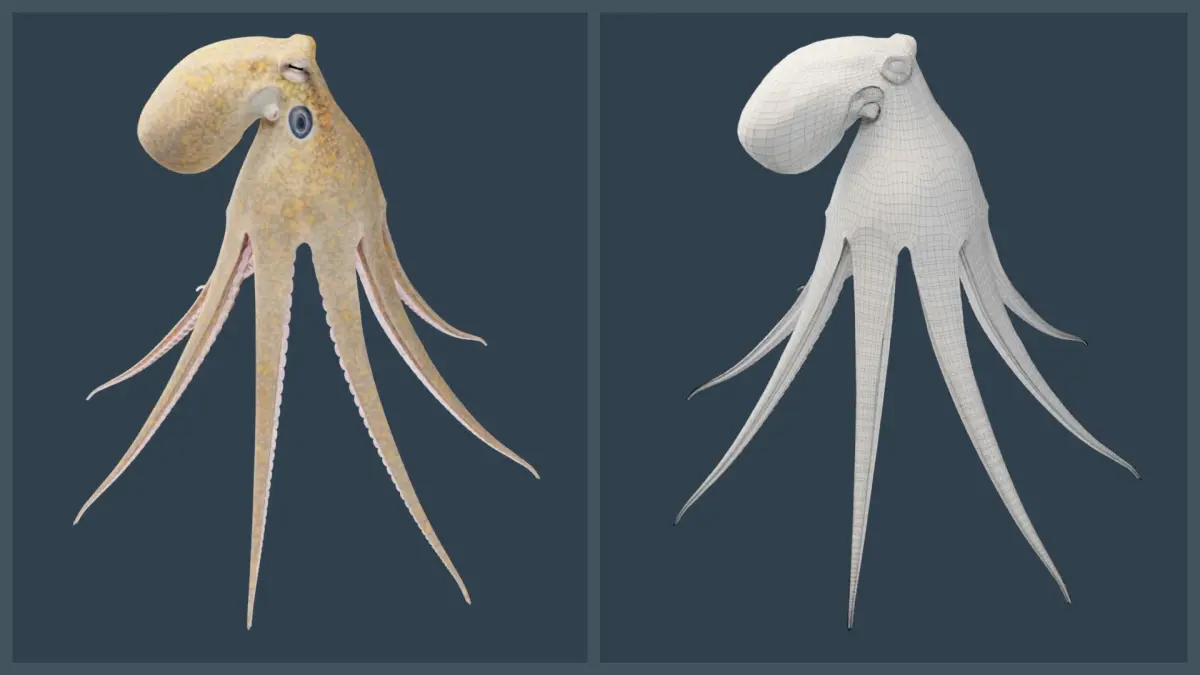 Animated octopus, textured and game-ready . Colors, textures, and shape are based on the California Two-Spot Octopus.