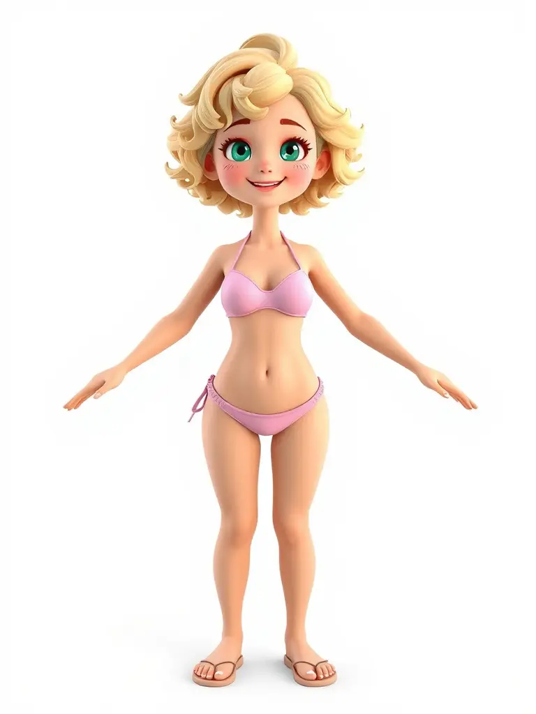 Home Catalog Animated Cartoon Female Character Model in Swimsuit Rigged an... Low-poly 3D model