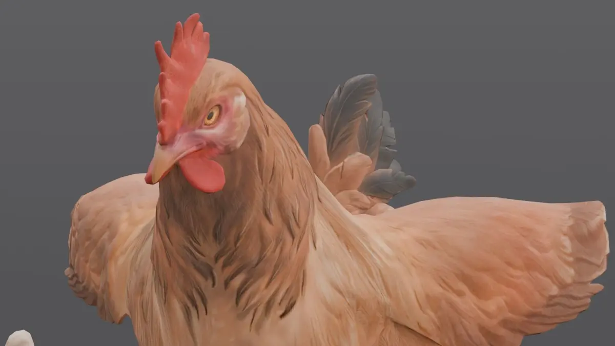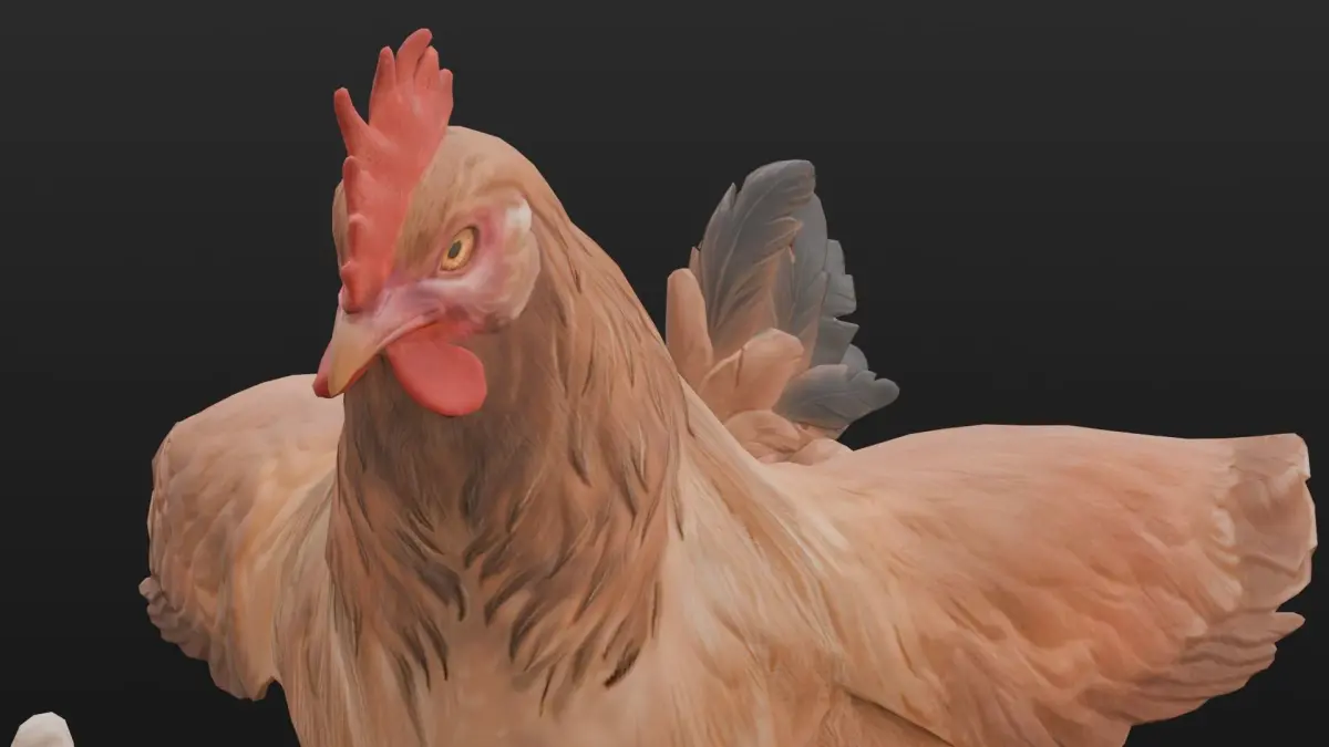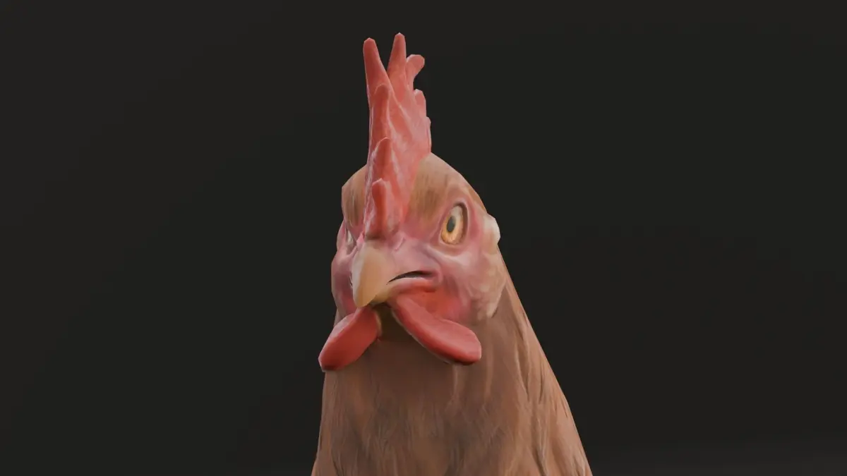 Textures: High-quality textures are applied to provide visual detail and enhance realism. These textures accurately depict the various features of the chicken, including feathers, skin, and other anatomical details.Materials: A variety of materials have been utilized to define the surface properties of the chicken, contributing to its realistic appearance. These materials simulate different textures and reflectivity levels, enhancing the model’s overall visual fidelity.Animation and Rigging: