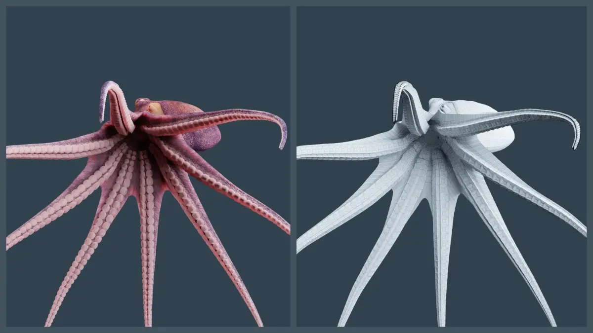 High-quality, game ready octopus. Fully animated and with PBR textures. Colors and shape are based on the common octopus, Octopus Vulgaris.