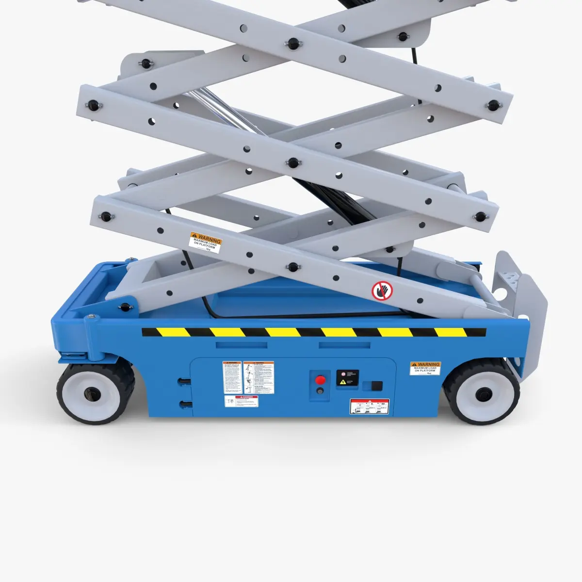Animated industrial scissor lift 3d model rendered with Cycles in Blender, as per seen on attached images. The animation consists of the lift elevating from the bottom position to full extension over 360 frames (time frame is easily adjsutable). All details are animated and fitting properly (scissor, pistons, cables, platform extender).The model is scaled to real-life scale.