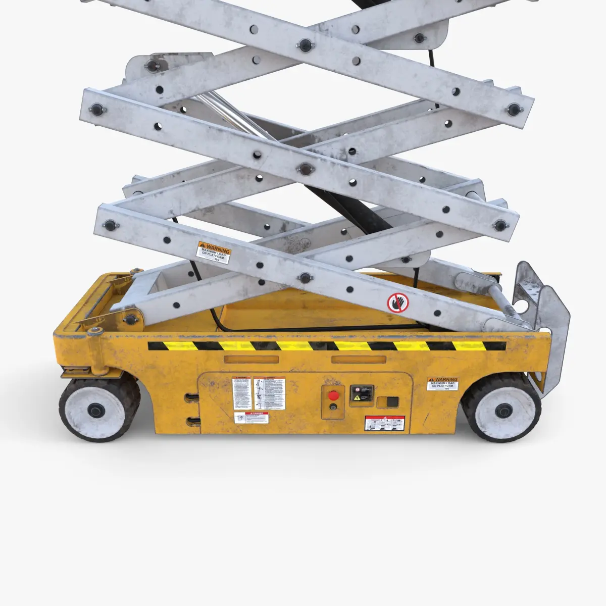 Animated industrial scissor lift 3d model rendered with Cycles in Blender, as per seen on attached images. The animation consists of the lift elevating from the bottom position to full extension over 360 frames (time frame is easily adjsutable). All details are animated and fitting properly (scissor, pistons, cables, platform extender).The model is scaled to real-life scale.