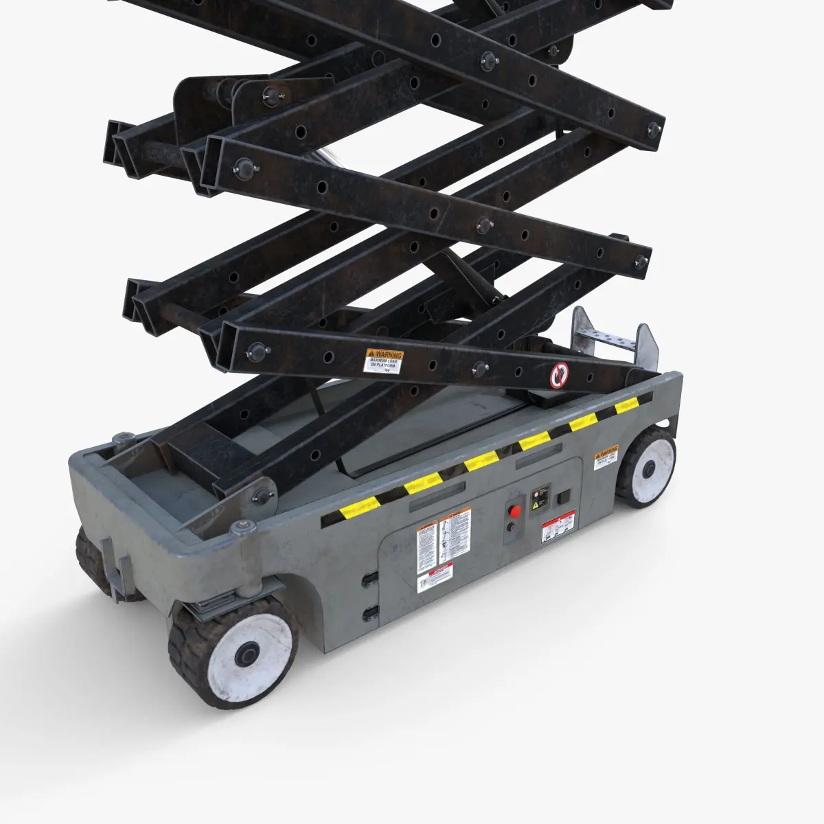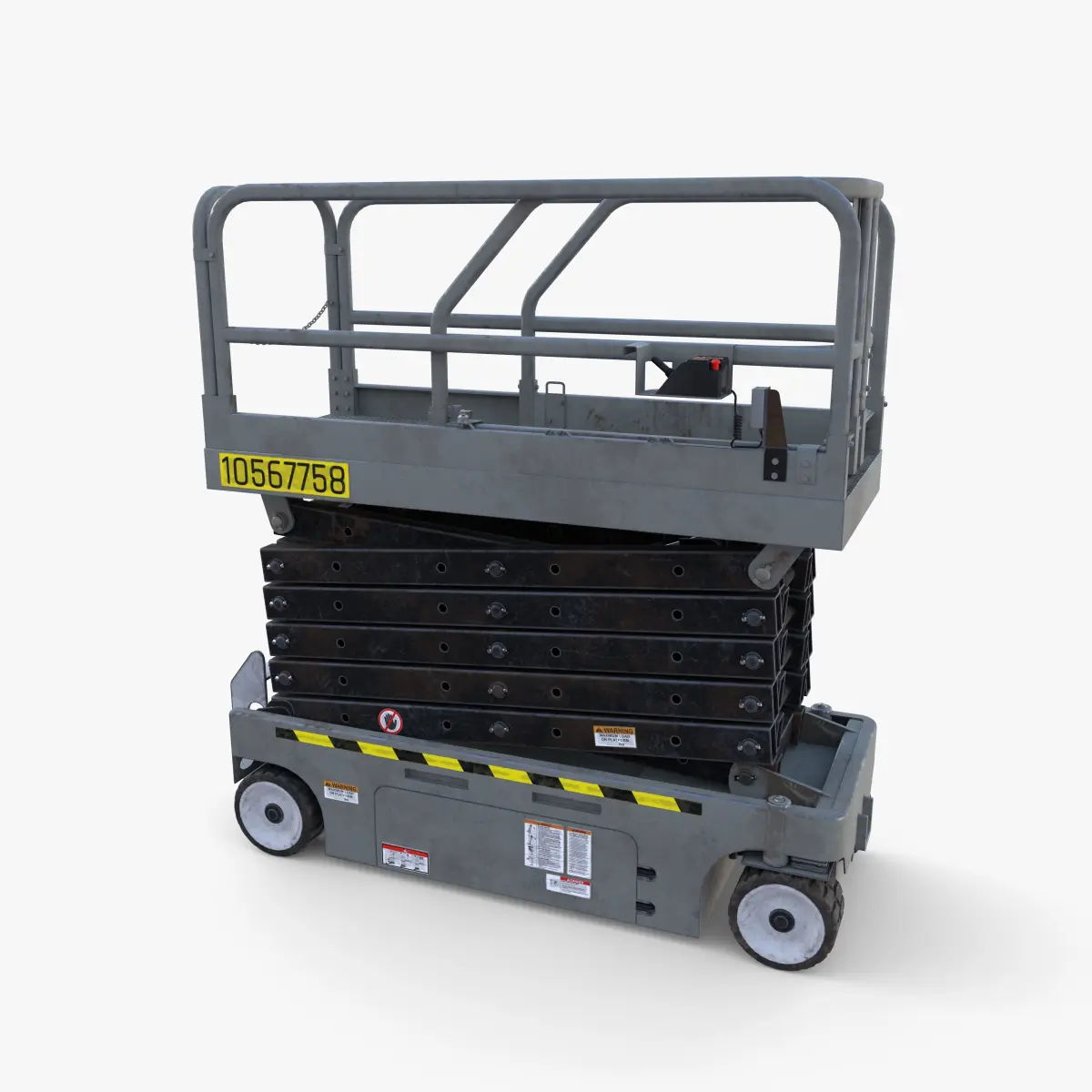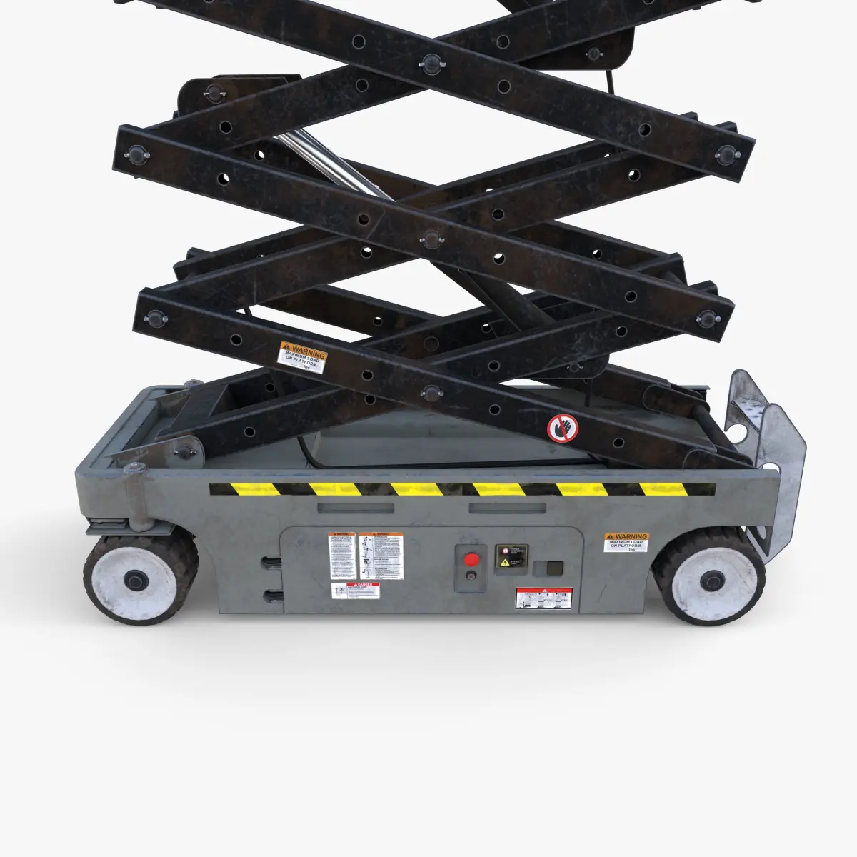 Animated industrial scissor lift 3d model rendered with Cycles in Blender, as per seen on attached images. The animation consists of the lift elevating from the bottom position to full extension over 360 frames (time frame is easily adjsutable). All details are animated and fitting properly (scissor, pistons, cables, platform extender).The model is scaled to real-life scale.