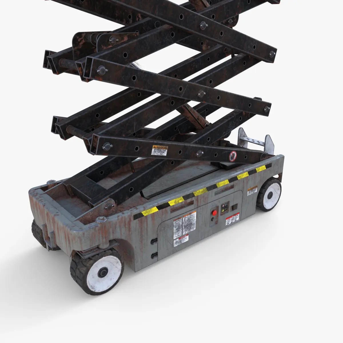 Animated industrial scissor lift 3d model rendered with Cycles in Blender, as per seen on attached images. The animation consists of the lift elevating from the bottom position to full extension over 360 frames (time frame is easily adjsutable). All details are animated and fitting properly (scissor, pistons, cables, platform extender).The model is scaled to real-life scale.