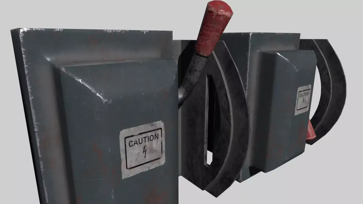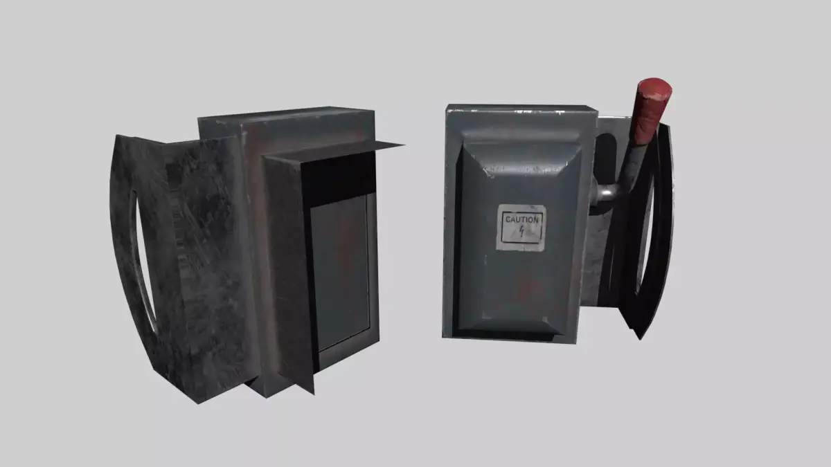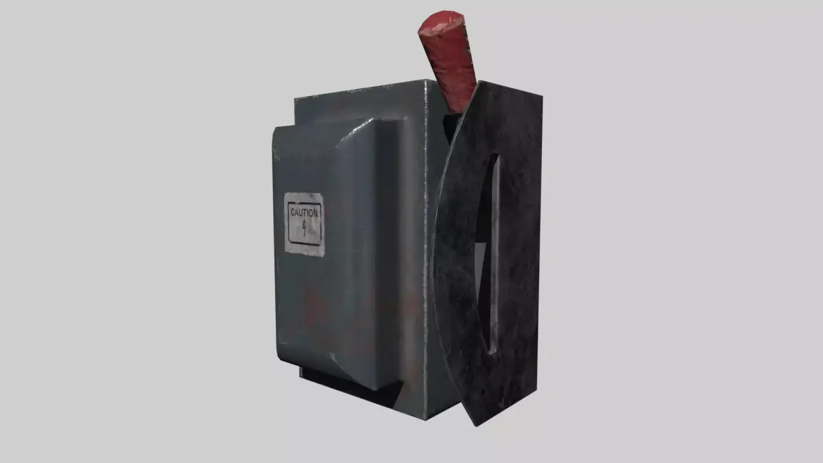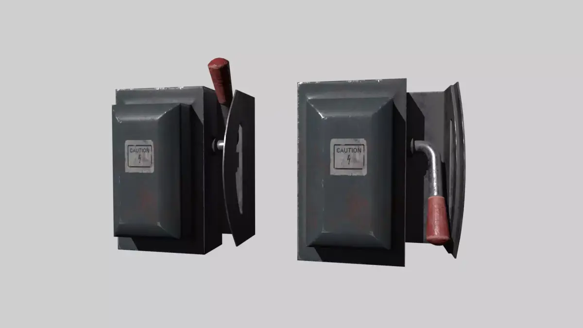 An old wall mounted electrical disconnect switch with a pull lever which has animations for up and down. Ideal for player interaction within your level to turn on or off power.