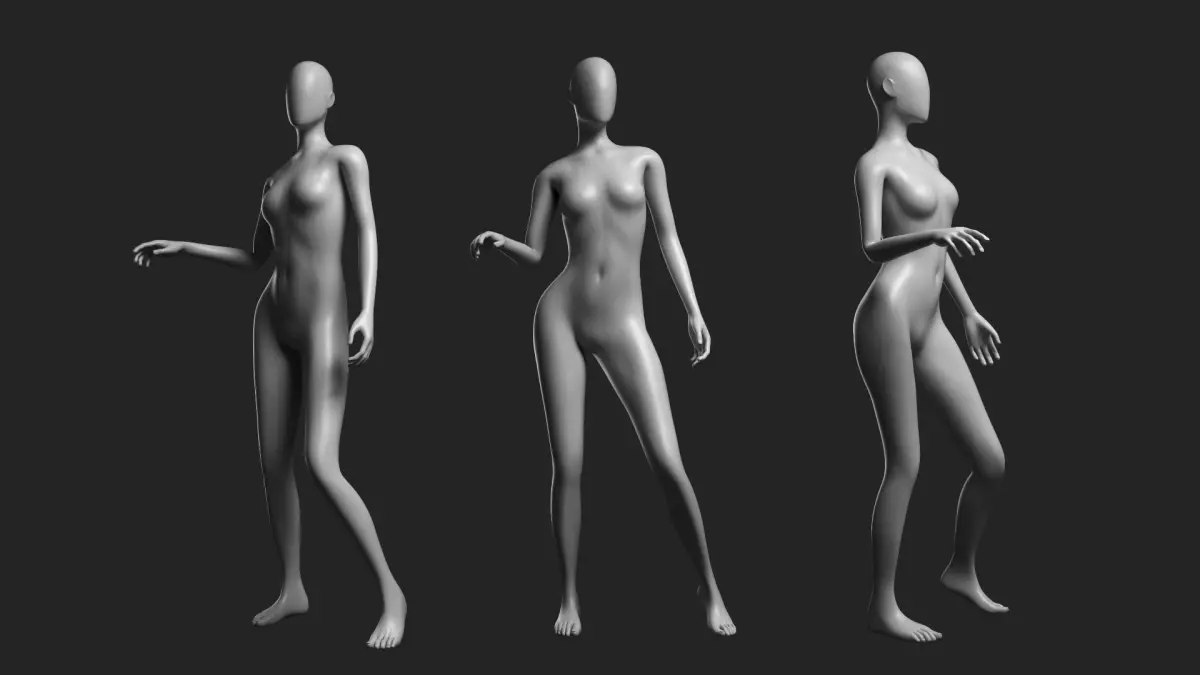 High quality 3D model of the Animated Female Mesh - 14 poses v2 for Marvelous Designer.