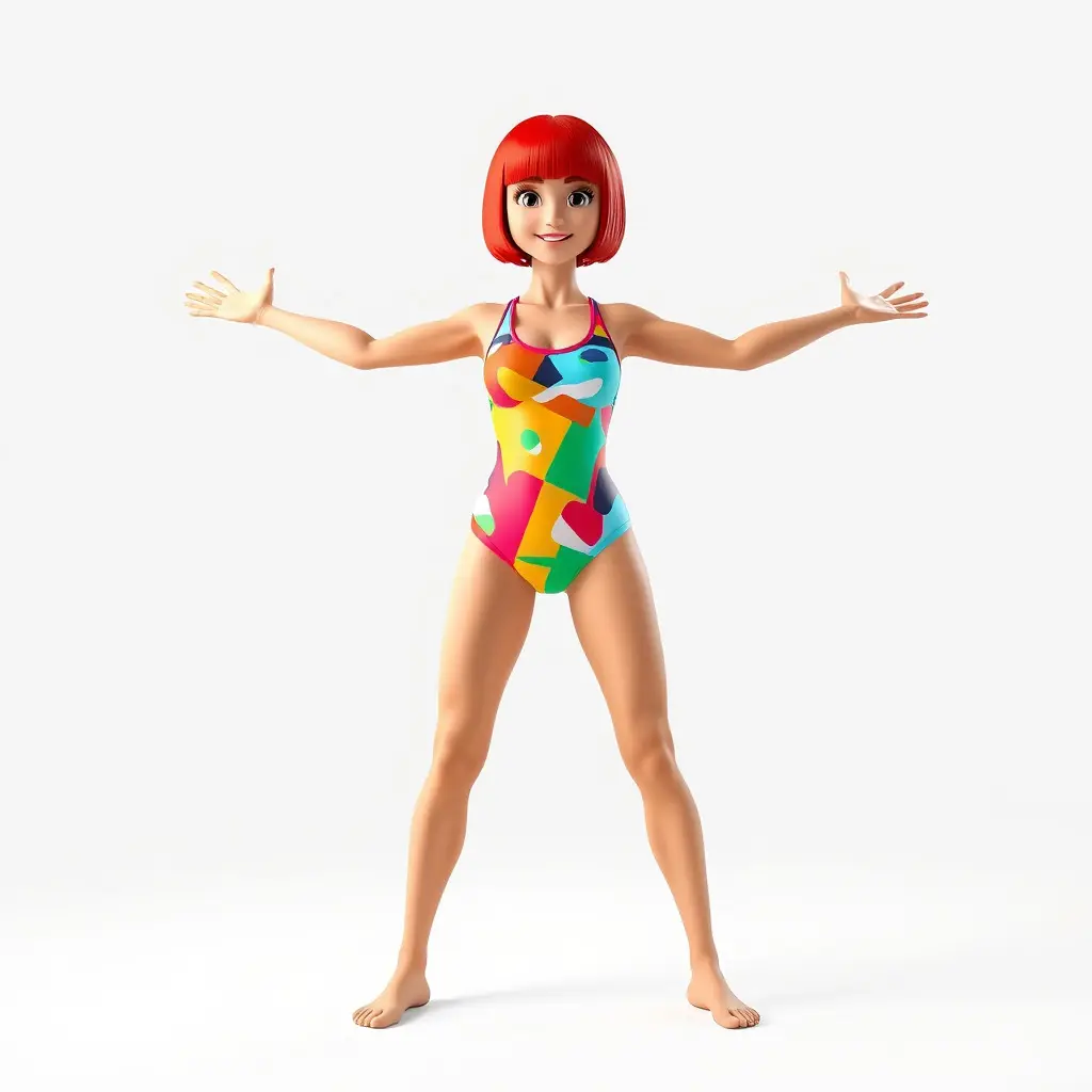 Home Catalog Animated Female Swimsuit Model Red Hair Rigged and Animated Low-poly 3D model