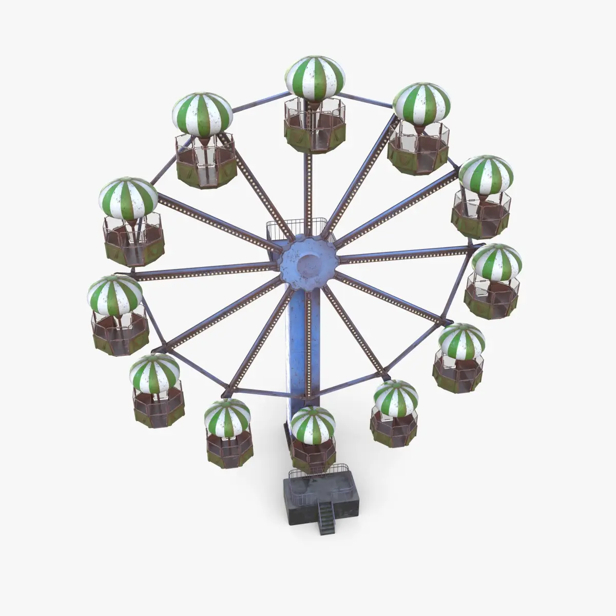 Animated ferris wheel 3d model rendered with Cycles in Blender, as per seen on attached images.