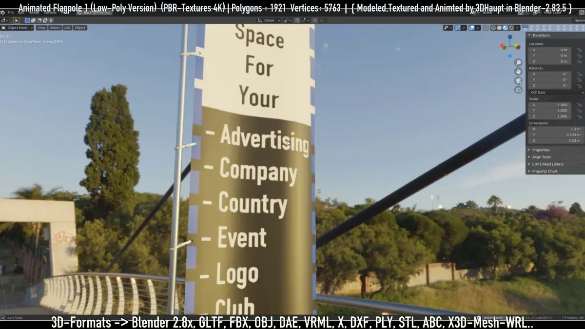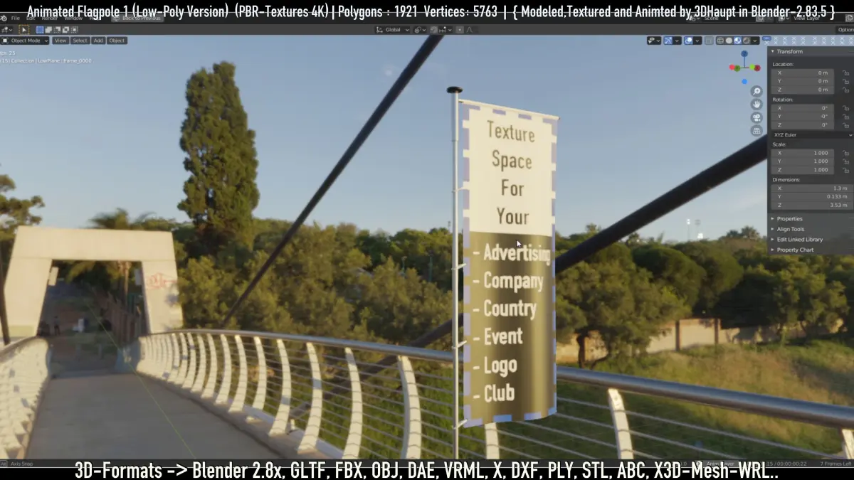 - The content you see on the flag is just a placeholder. I made the uv map so that you can easily edit it in an external image editor.