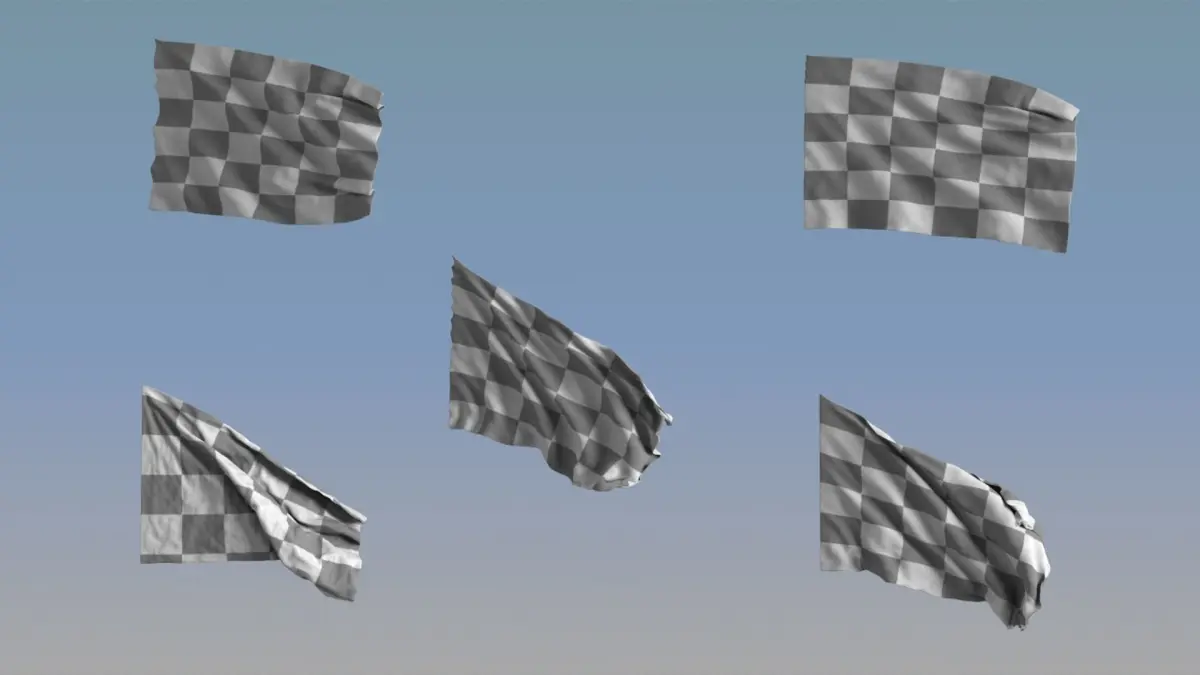 Please check the video to see the 20 different simulated flags that you have to use for your scene.