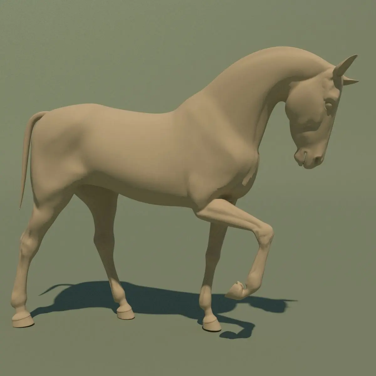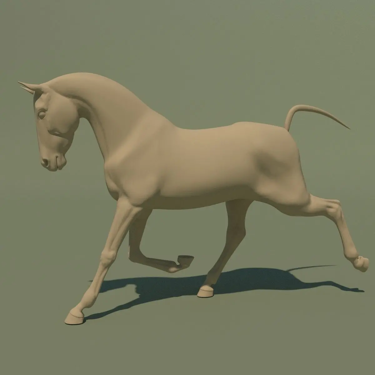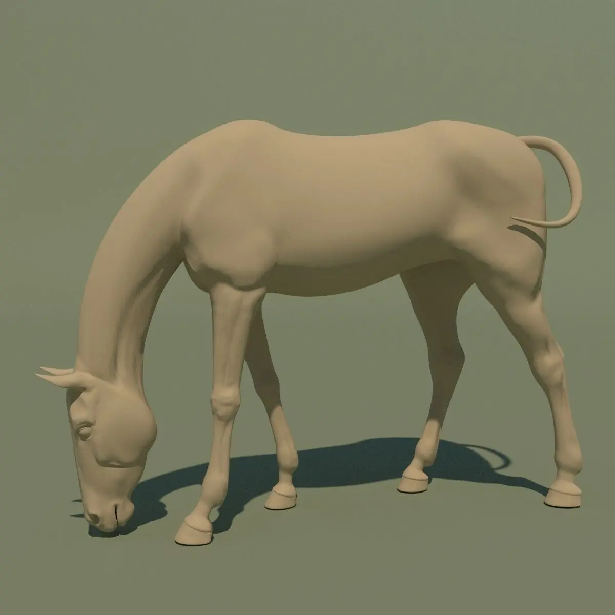 Horse is completly rigged and animated. Inside blender file you will find animations (walk2, trot, galop) and all poses presented on renders here (test_poses).