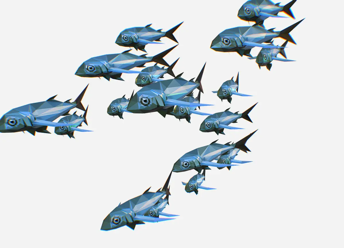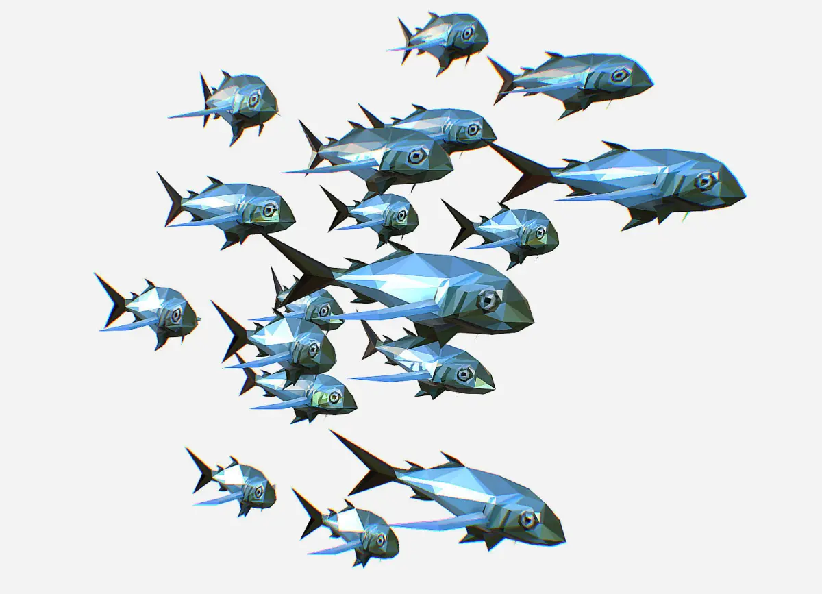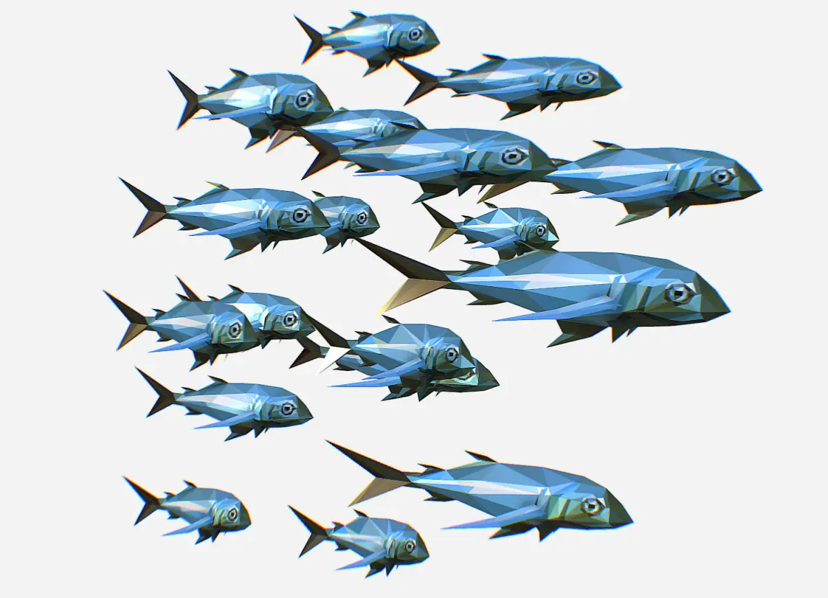 Animated Low Poly Art Flock Green Sea Fish Low-poly 3D model