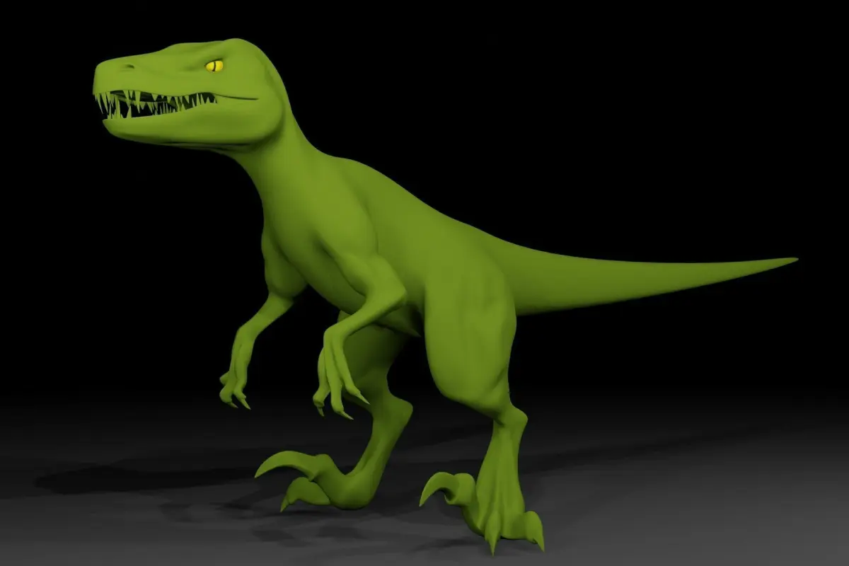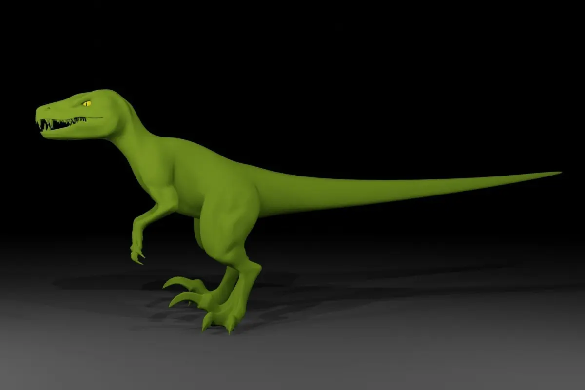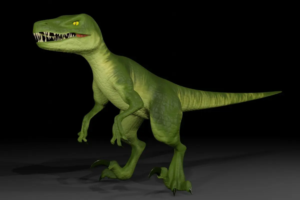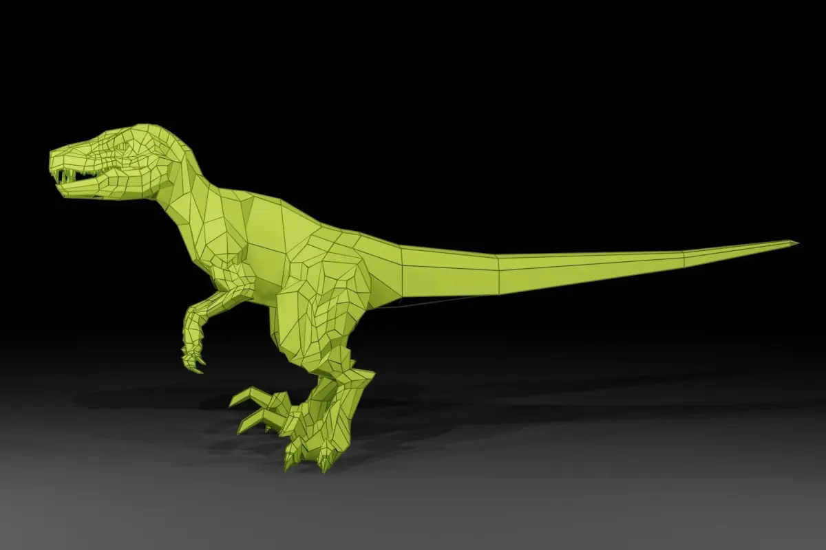Rigged and animated lowpoly Velociraptor model. Model file is subdivision ready; textured turntable preview images are of the model with two levels of subdivision applied. Also included in the preview images are the non-subdivided model with visible wireframe. Sculpted in Blender, UV unwrapped.
