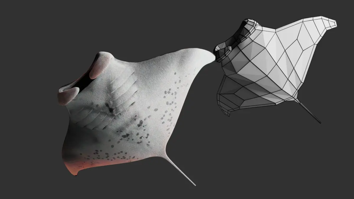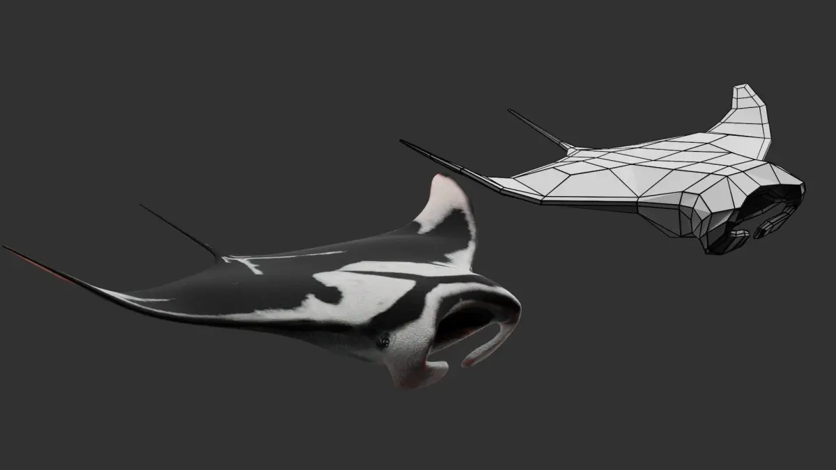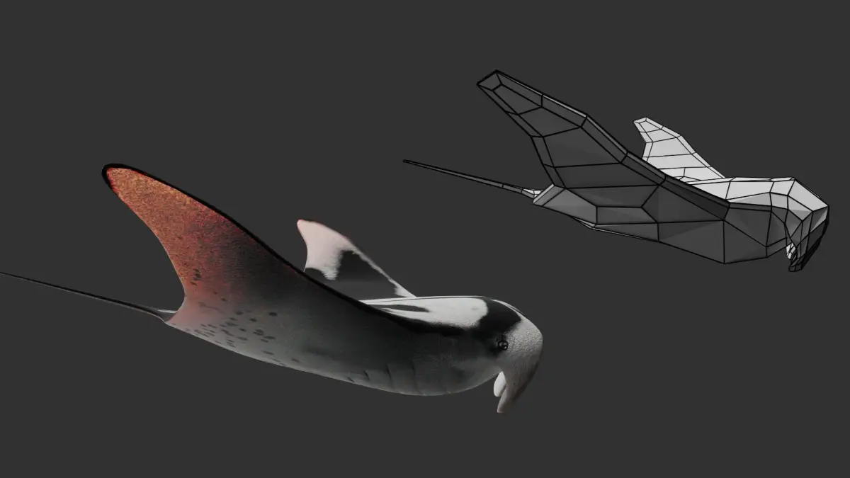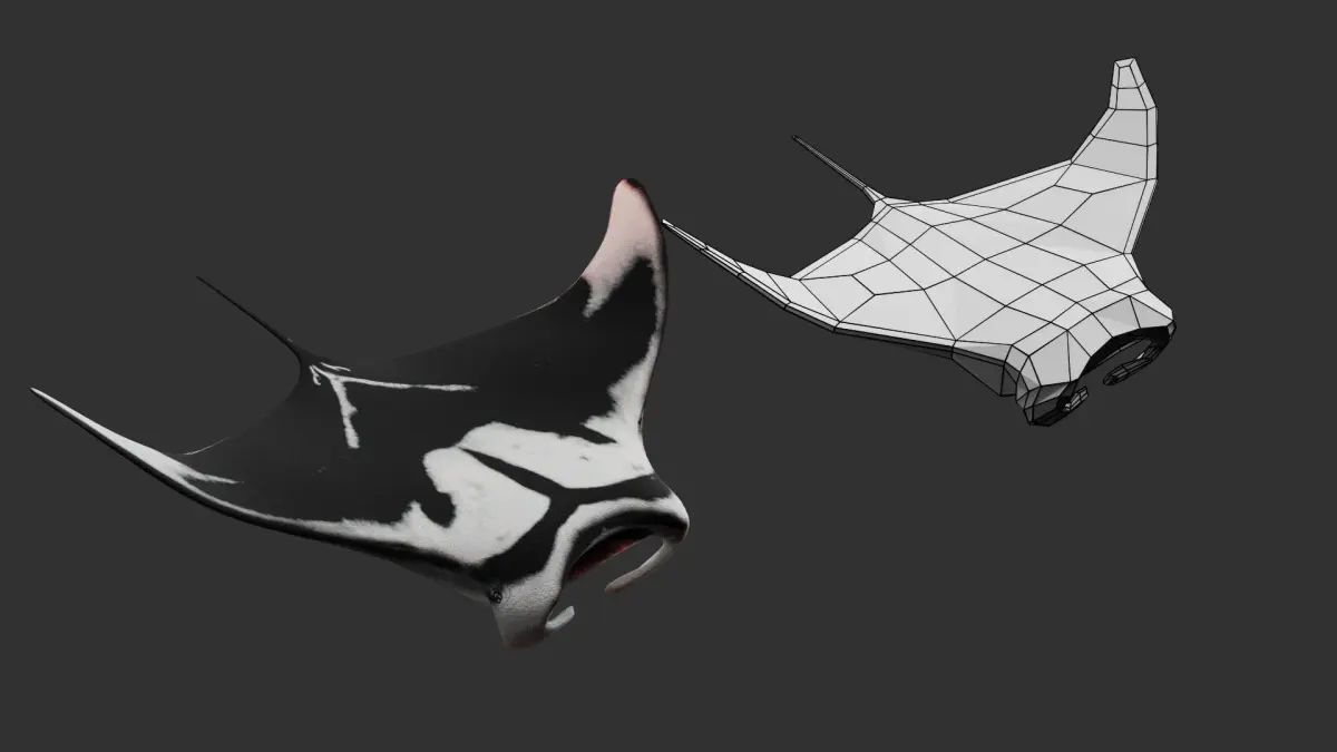 Animated and textured Manta Ray model, lowpoly and game-ready!