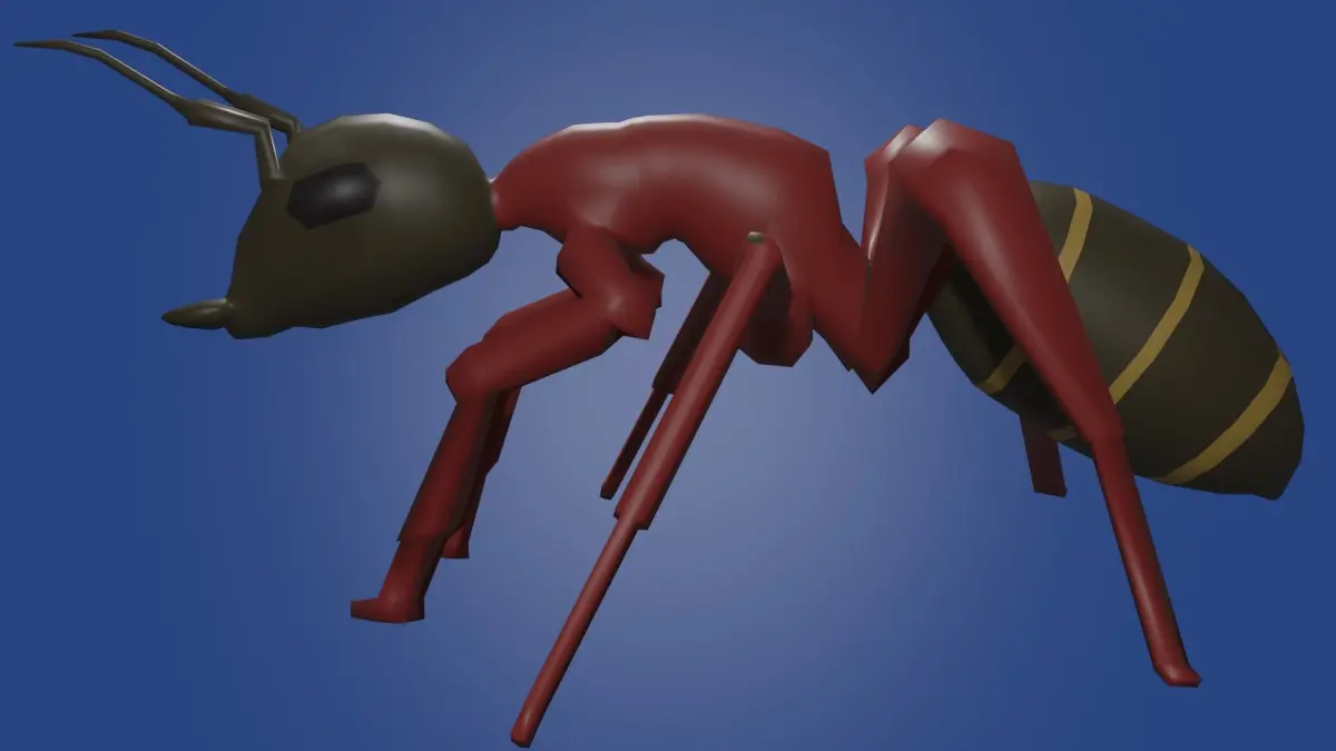 Animated model of an ant. Low-poly. Game ready.Three animations: Idle, run, attak.