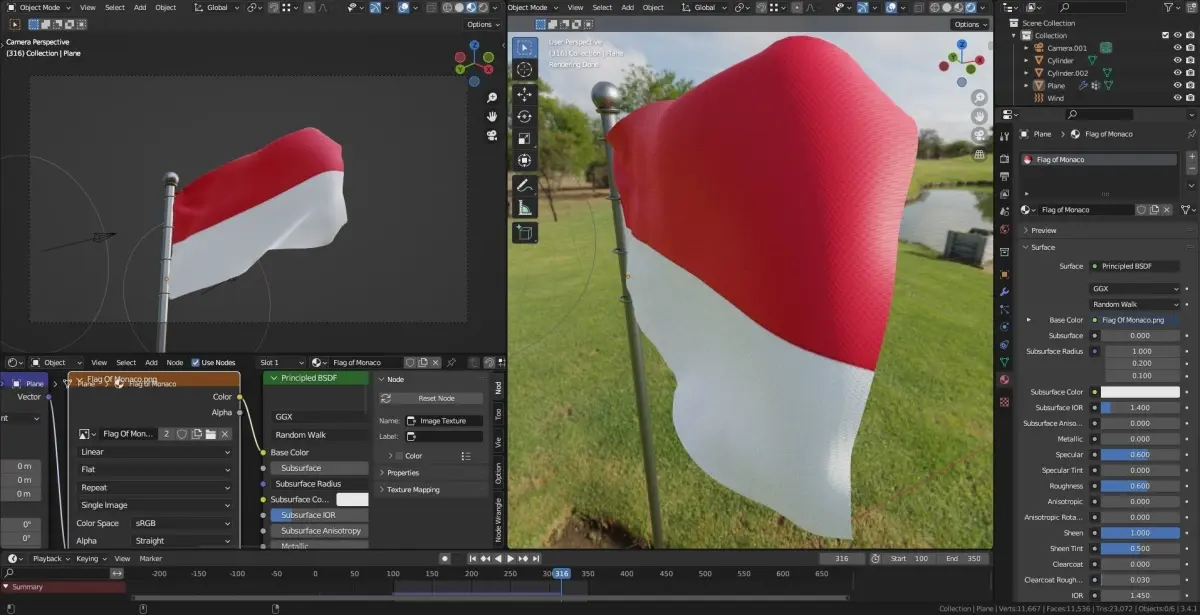 Photorealistic animation of the Monaco flags.