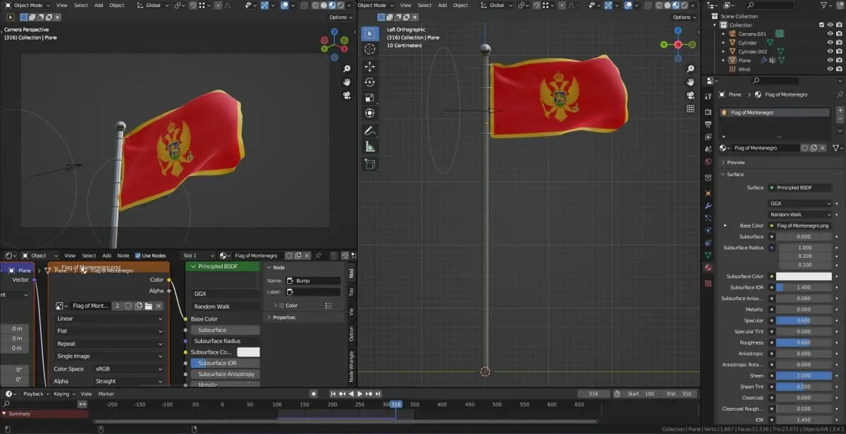 Photorealistic animation of the Montenegro flags.
