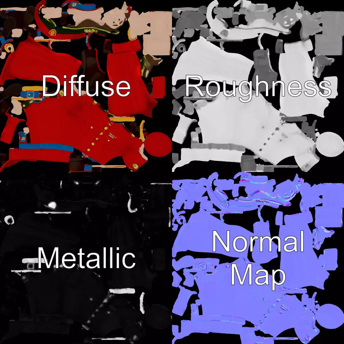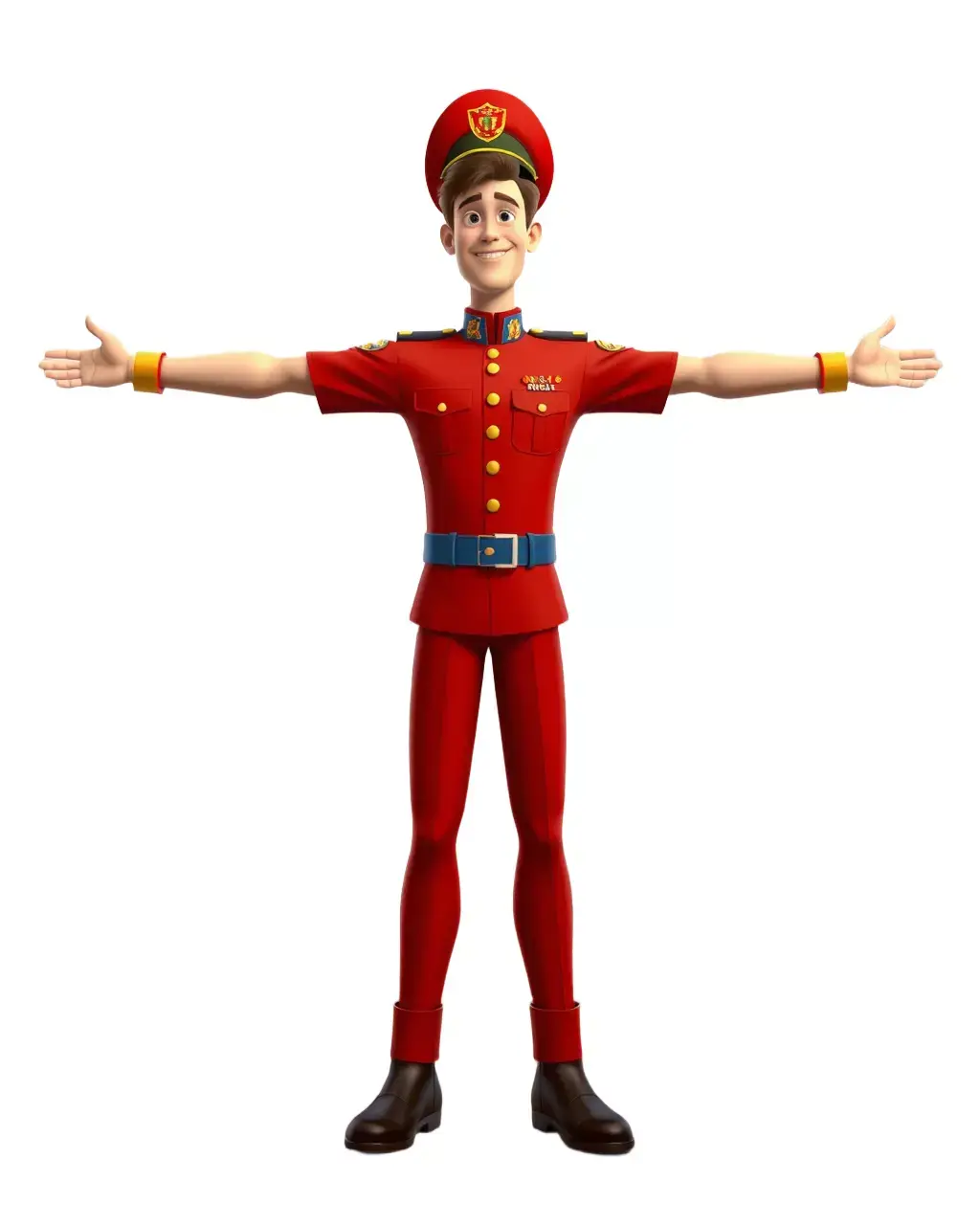 This Animated Officer Character model pack features a cartoon-styled soldier dressed in a vibrant red uniform complete with a matching hat and polished boots. The model is perfect for animated films, educational content, and video games with a whimsical or formal military theme. Each model has 3 levels of detail: low-poly (1000 triangles for mobile), middle-poly (10000 triangles for environment), and high-poly (100000 triangles), which allows for the use of this model in production rendering (such as 3ds Max, Maya, Cinema 4D, Blender, Vray/Corona/Cycles and all other), game engines (Unity and Unreal compatible), and interactive presentations, providing a choice of detail based on the LOD System principle. The model's textures are PBR, Diffuse, NormalMap, and reflection/roughness/metallic, which are suitable for any modern rendering engine. All models accurately unwrapped and have no overlapping UV. All textures are 4096*4096 in size. Enjoy bringing your projects to life with this dynamic character model. Please like and leave a comment if you enjoyed this model!