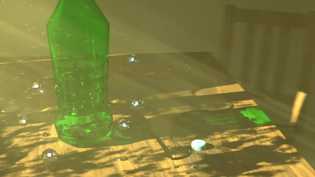 Bring realism and drama to your next project with this animated Blender scene. Featuring a highly detailed green glass bottle, volumetric sunlight beams, realistic caustics, floating dust particles, and a wooden table with natural spill and cap details, this asset is perfect for product visualization, ads, film, or game environments.