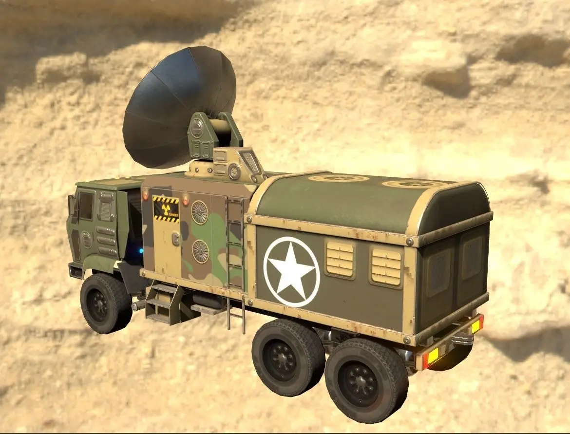 10k triangles Rigged animated Radar truck.