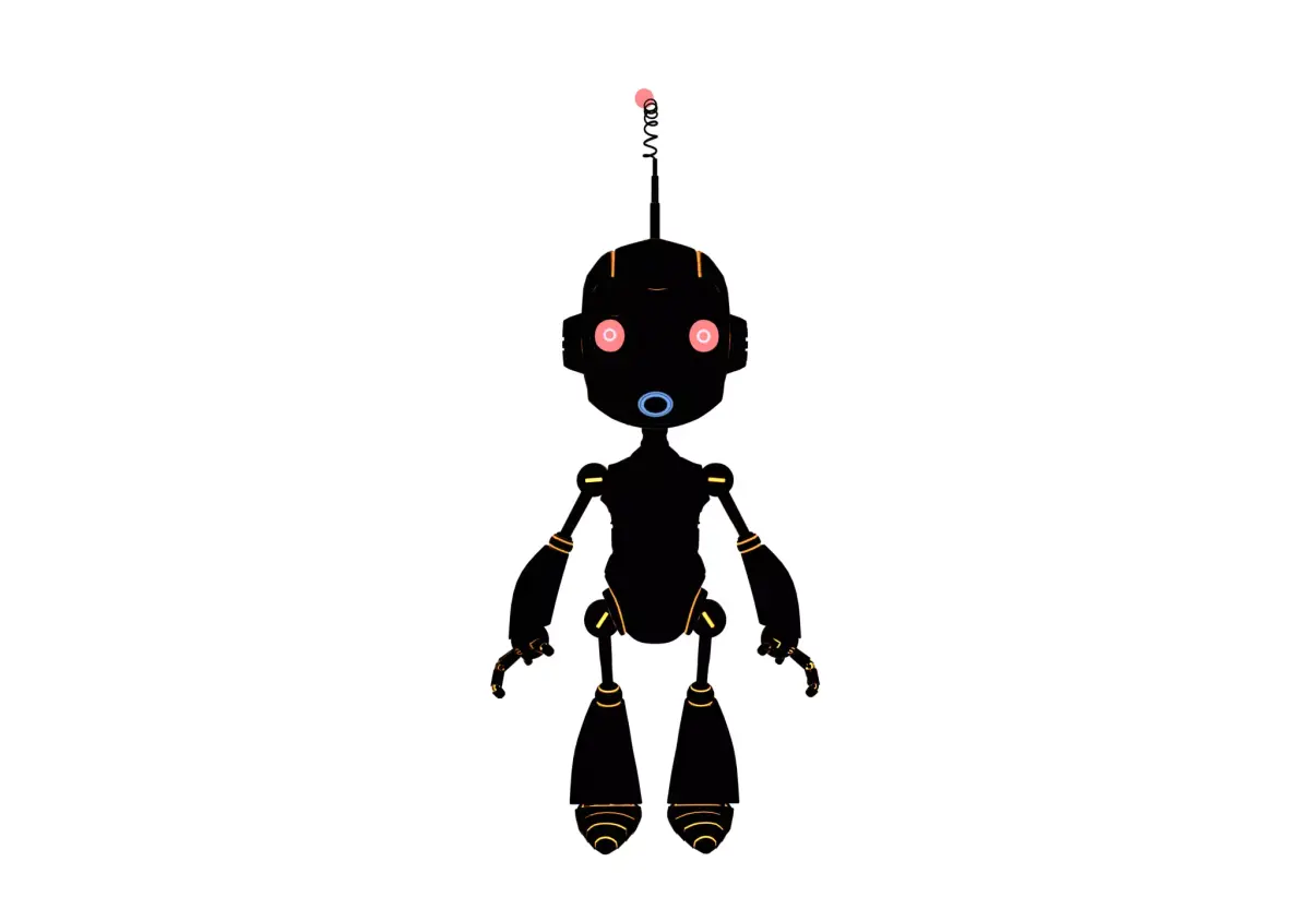 A stylized and game-ready robot character 3D model, designed for animation, games, cinematic renders, and sci-fi scenes. The model features clean topology, detailed robotic body parts, and a fully rigged structure for easy posing and animation.