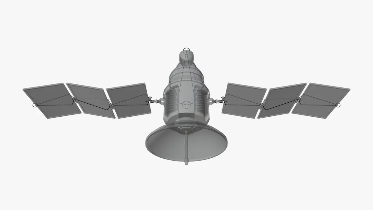 Game ready 3D model of a Sci-Fi Satellite with rig animation. The model can fold and rotate solar panels.