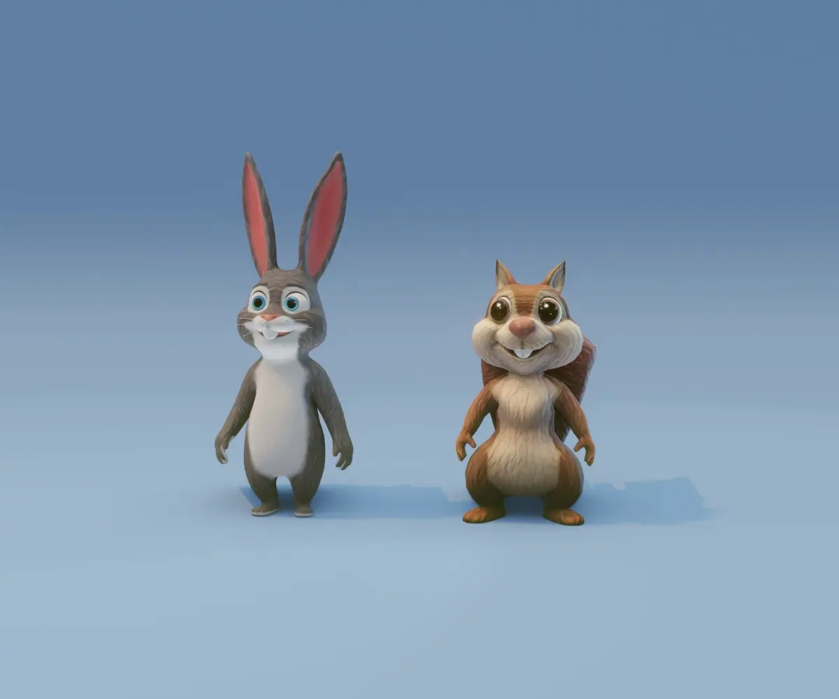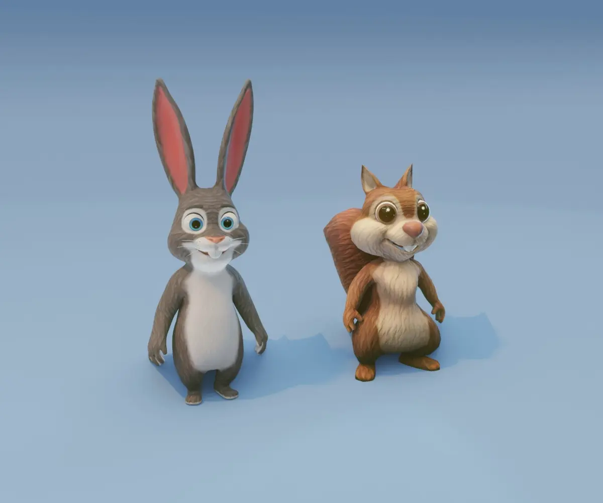 Chirp 'n' Fluffy: Animated Squirrel and Rabbit 3D Model Collection consists of 2 models (both models share the same style and have similar polycount):