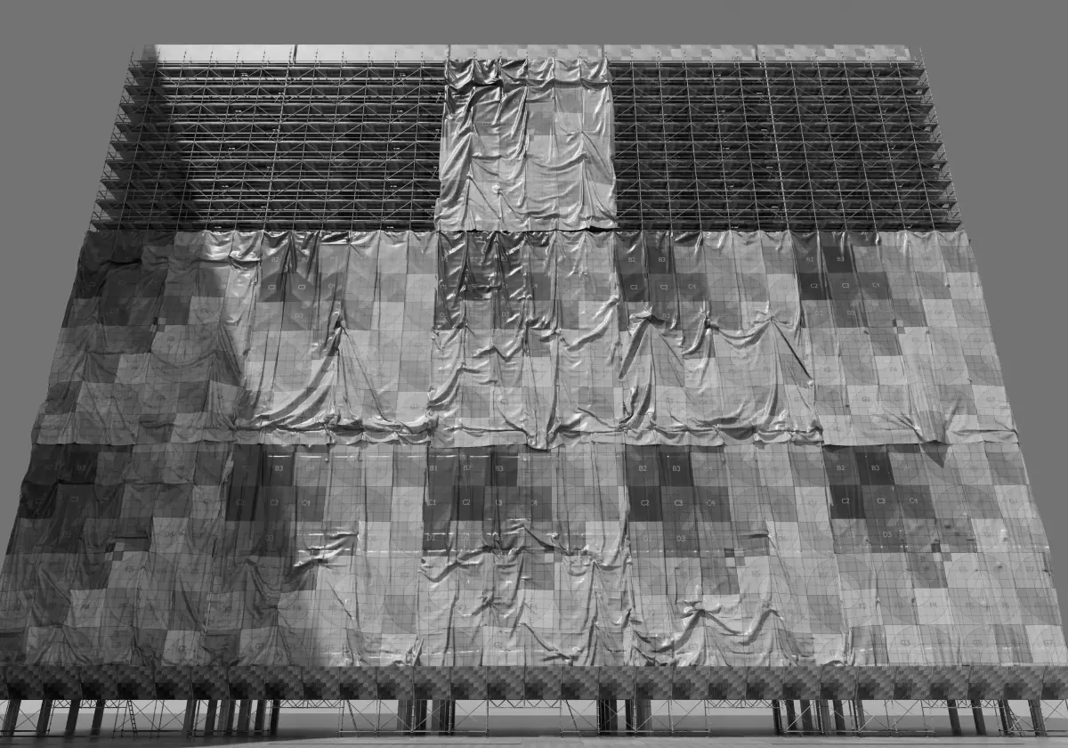 For renovation you need this : the scaffolding and animated tarpaulin.