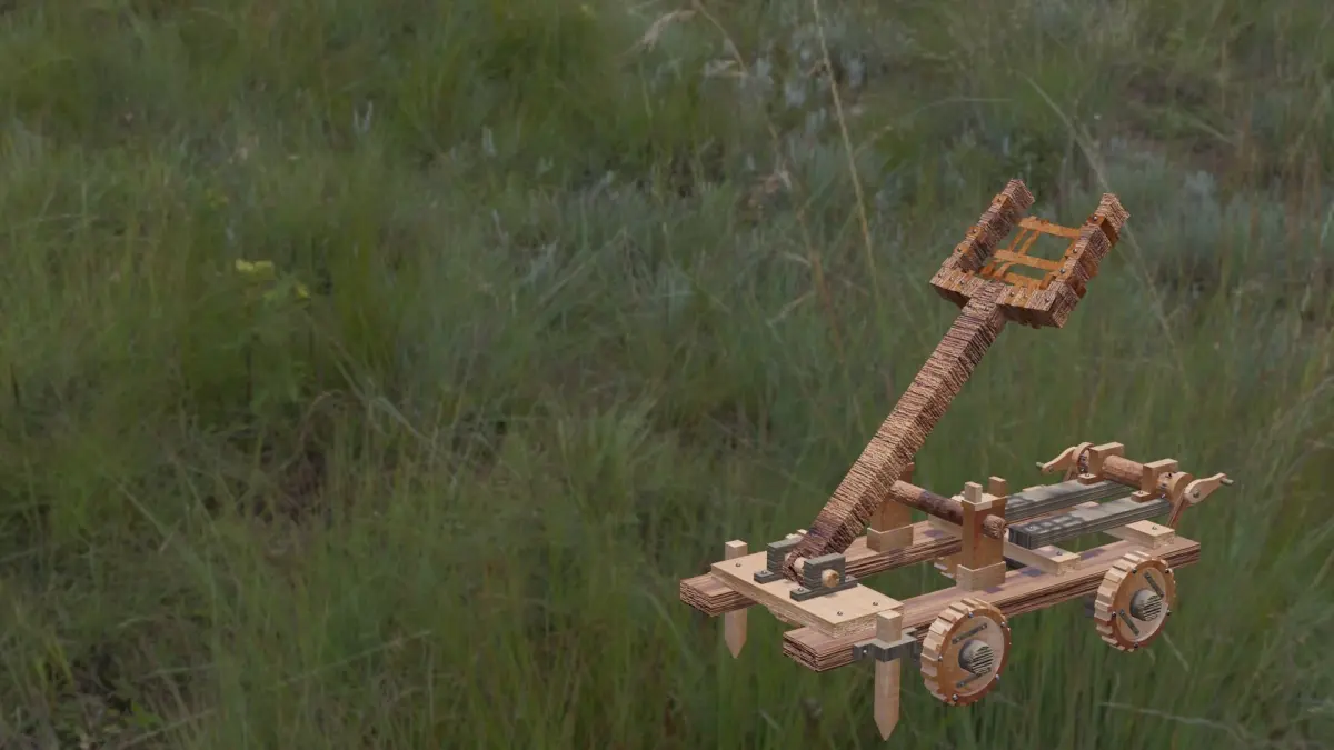 Use this catapult to complete your scenes :DIt uses drivers for wheel movement, a bend modifier for bending the arm and physics for throw the ball.