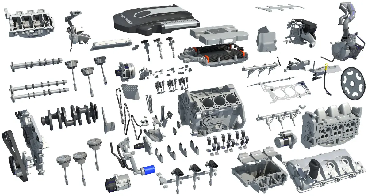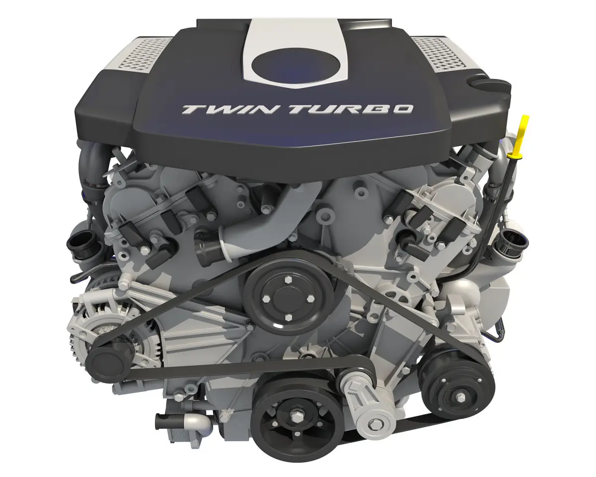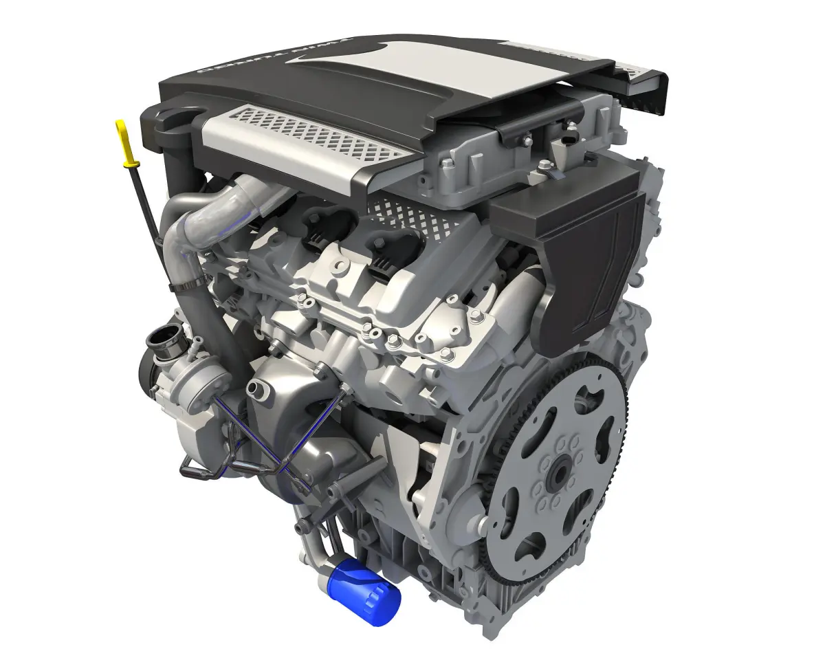 High quality, fully detailed and animated V6 engine 3d model.