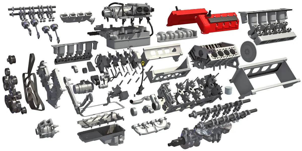 All required parts: (crank, connecting rods, pistons, cam, valves) conform to this timing.