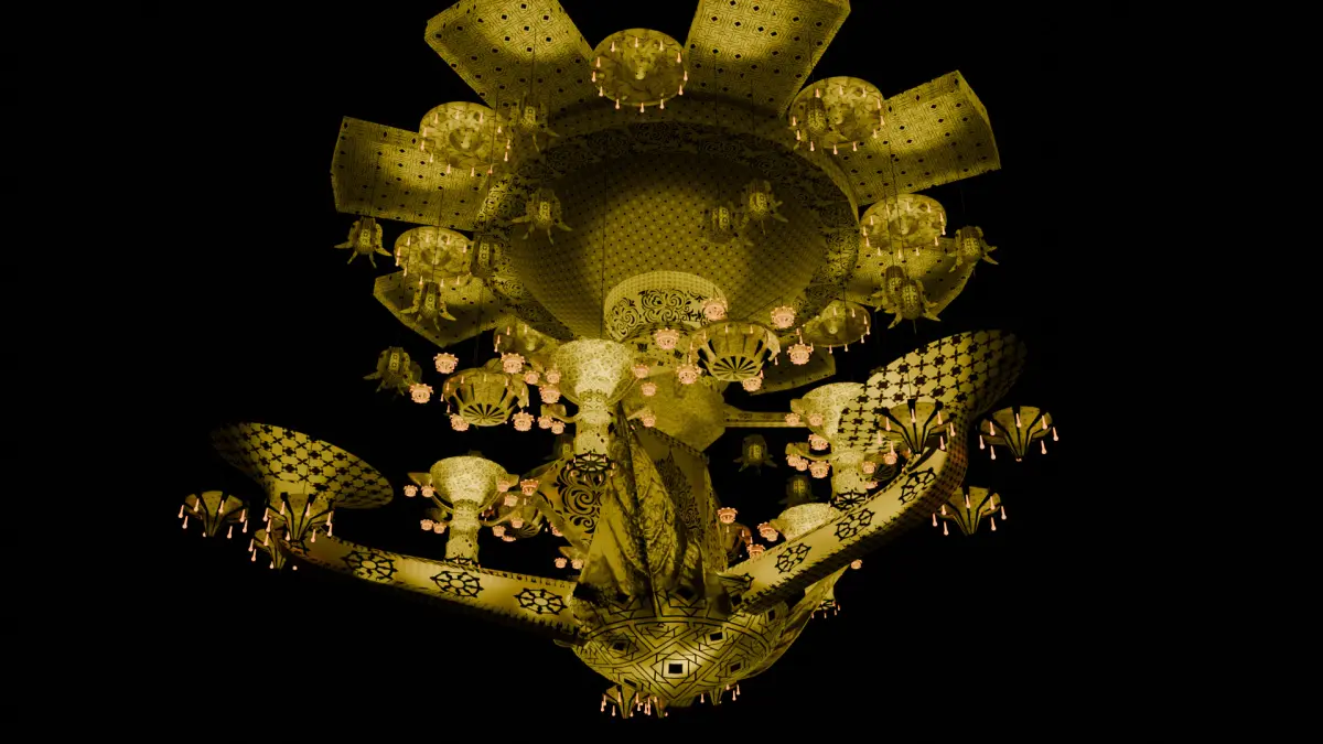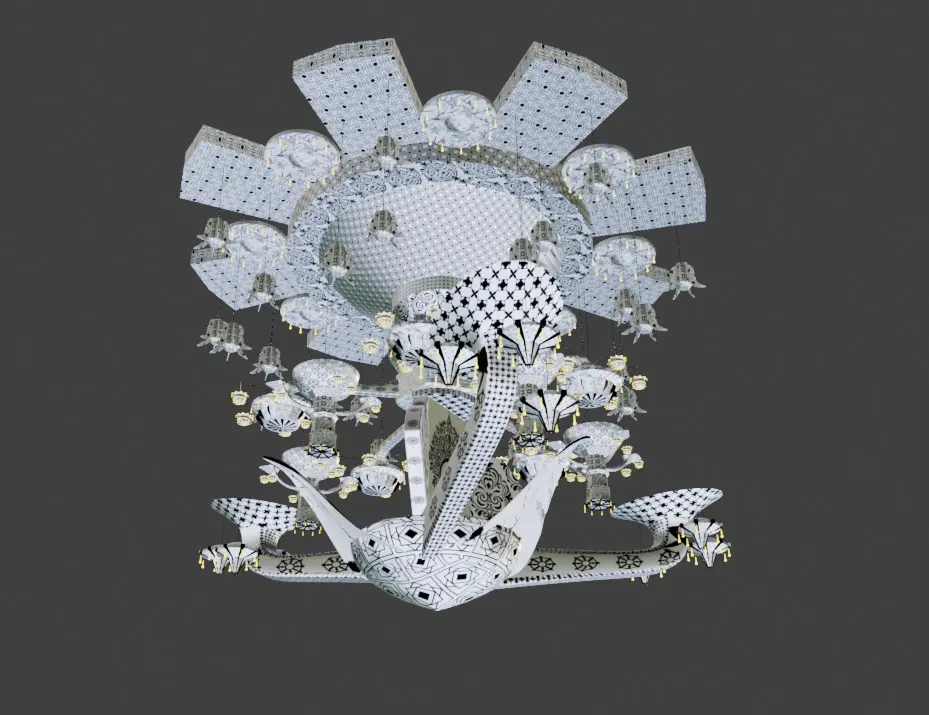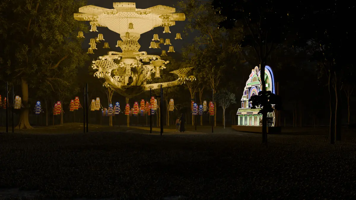 The model features animated rotating arms and hanging lanterns, perfect for use in: