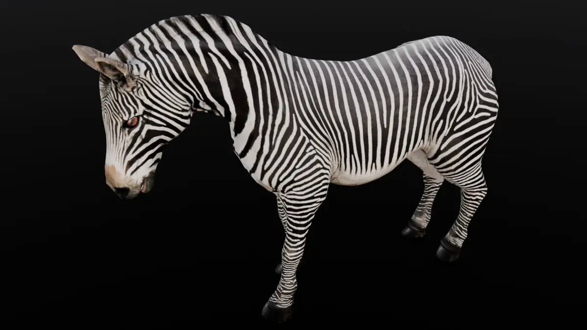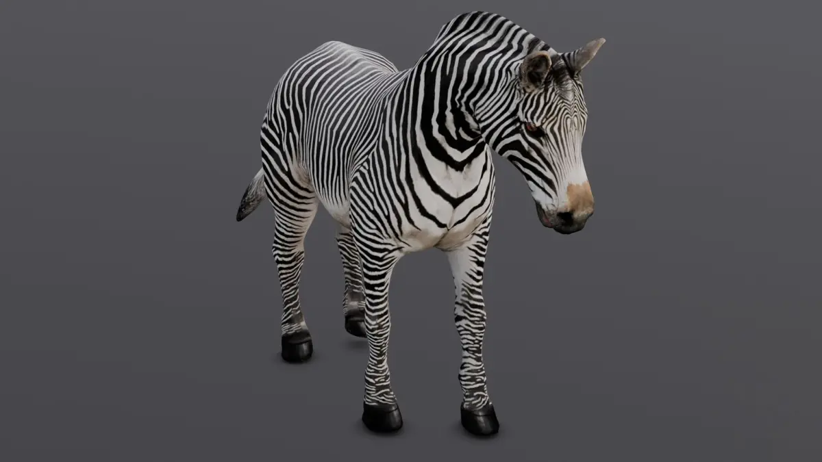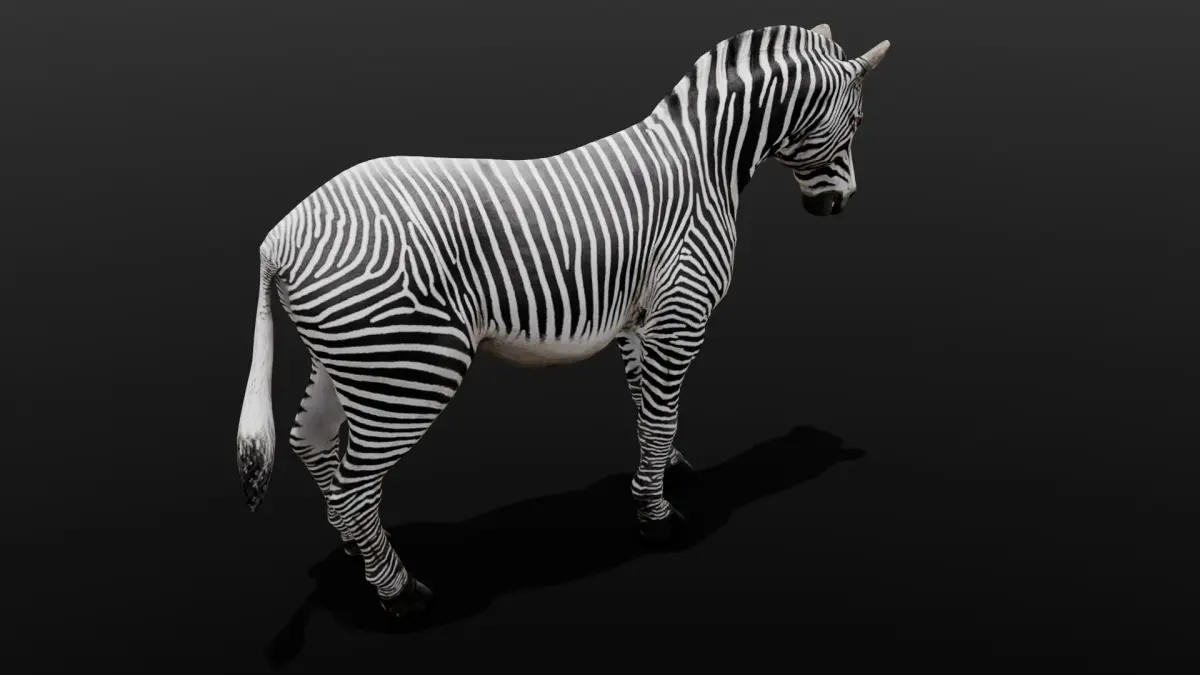 Application: Textures are meticulously applied to enhance visual detail and realism, providing lifelike skin, fur patterns, and other surface characteristics essential for an authentic zebra appearance.UV Mapping: The model employs advanced UV mapping techniques to ensure textures align accurately with the 3D geometry, enhancing the visual fidelity and overall aesthetics of the model.Materials: