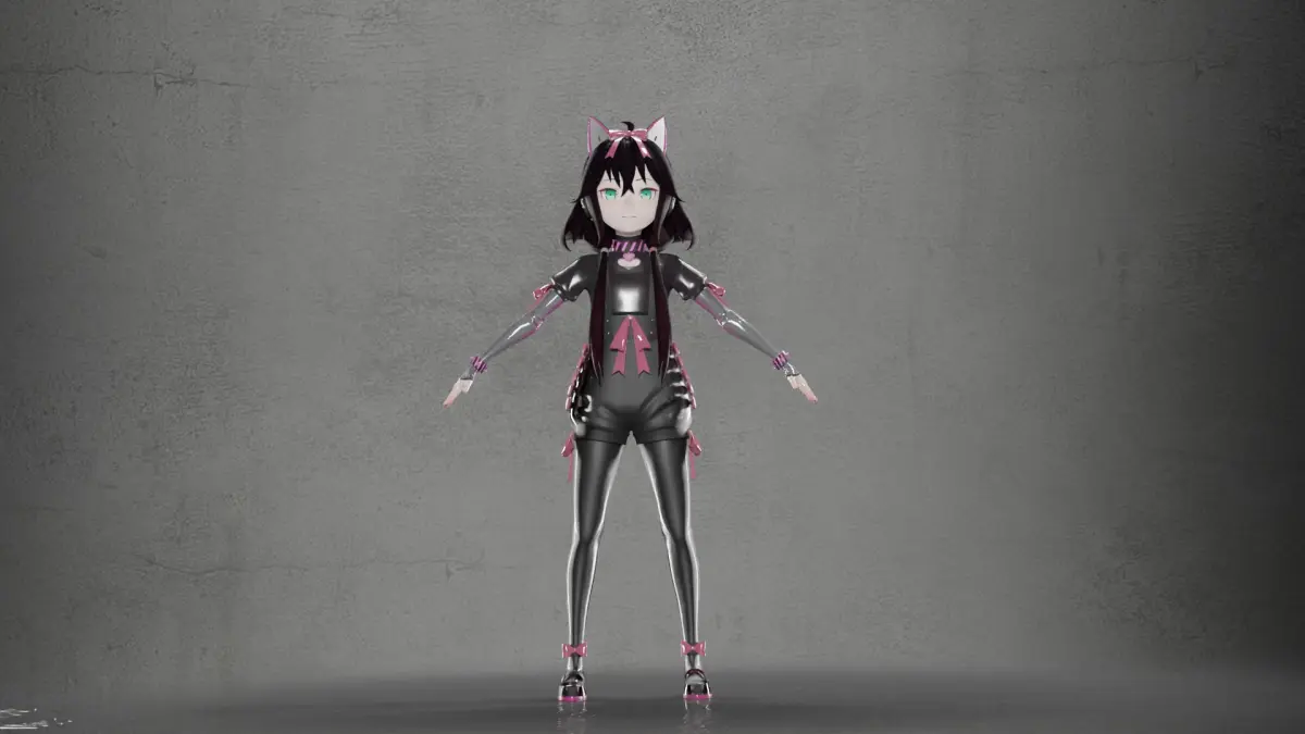 High-Quality Design: Detailed textures, stylized anime-inspired face, and expressive green eyes.Unique Accessories: Adorned with pink bows, a striped collar, and futuristic arm and leg detailing.Pose-Ready: Optimized mesh and clean topology, ready for rigging and animation.Versatile Use: Perfect for fantasy, sci-fi, or anime-themed projects.File Formats: Compatible with major 3D software Blender, Maya, 3ds Max, etc.This model is expertly crafted to stand out in any creative work, offering the perfect blend of futuristic style and anime charm. Don’t miss out—download today and start creating your masterpiece!