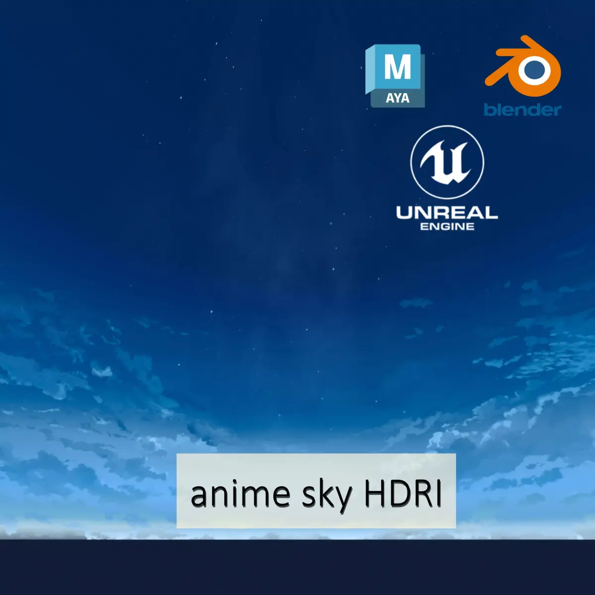 Step into a surreal atmosphere where anime meets photorealism. This high-resolution HDRI (4000x8000 pixels) wraps your 3D scenes in a dreamy blue sky filled with soft clouds and shimmering stars —perfect for creating nightscapes with a whimsical touch.