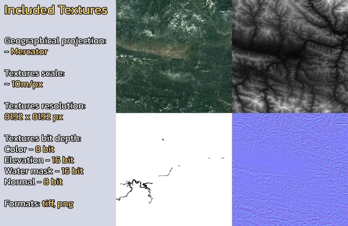 - Textures resolution: ~10m/px