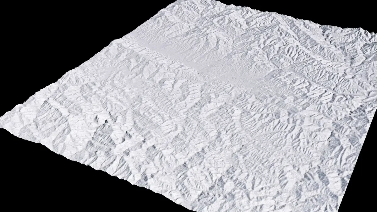 Originally created in Houdini 19. Final images rendered in Houdini. Data source is ASTER GDEM V3, ASTER WATER V1, Open Streep Maps 2022, Copernicus Sentinel 2016.